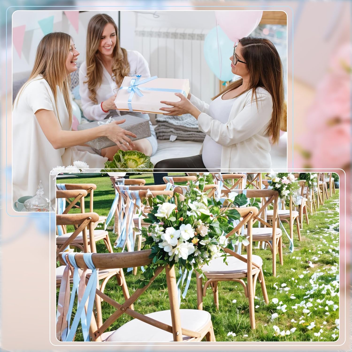 - 【Wide Application】Blue satin ribbon can be used to wrap gifts and make your gifts look more beautiful. In addition, the light blue ribbon is also suitable for wedding decoration, flower bouquet, balloons, wreaths, hair bows, cake packaging, craft project, home decoration, etc.