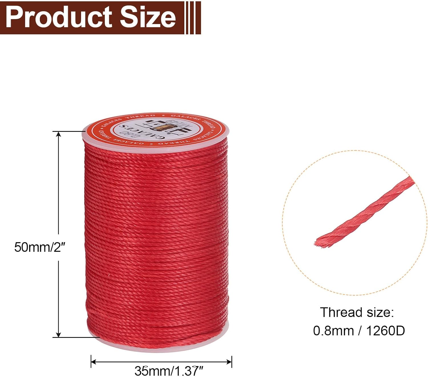 - [ Generous Length ] -With 55m (approx. 60 Yards) per spool 2 spools in total and a 0.80mm diameter, this round 1260D waxed polyester leather thread provides exceptional value. Its generous length reduces the need for frequent spool changes, allowing you to seamlessly complete multiple projects.