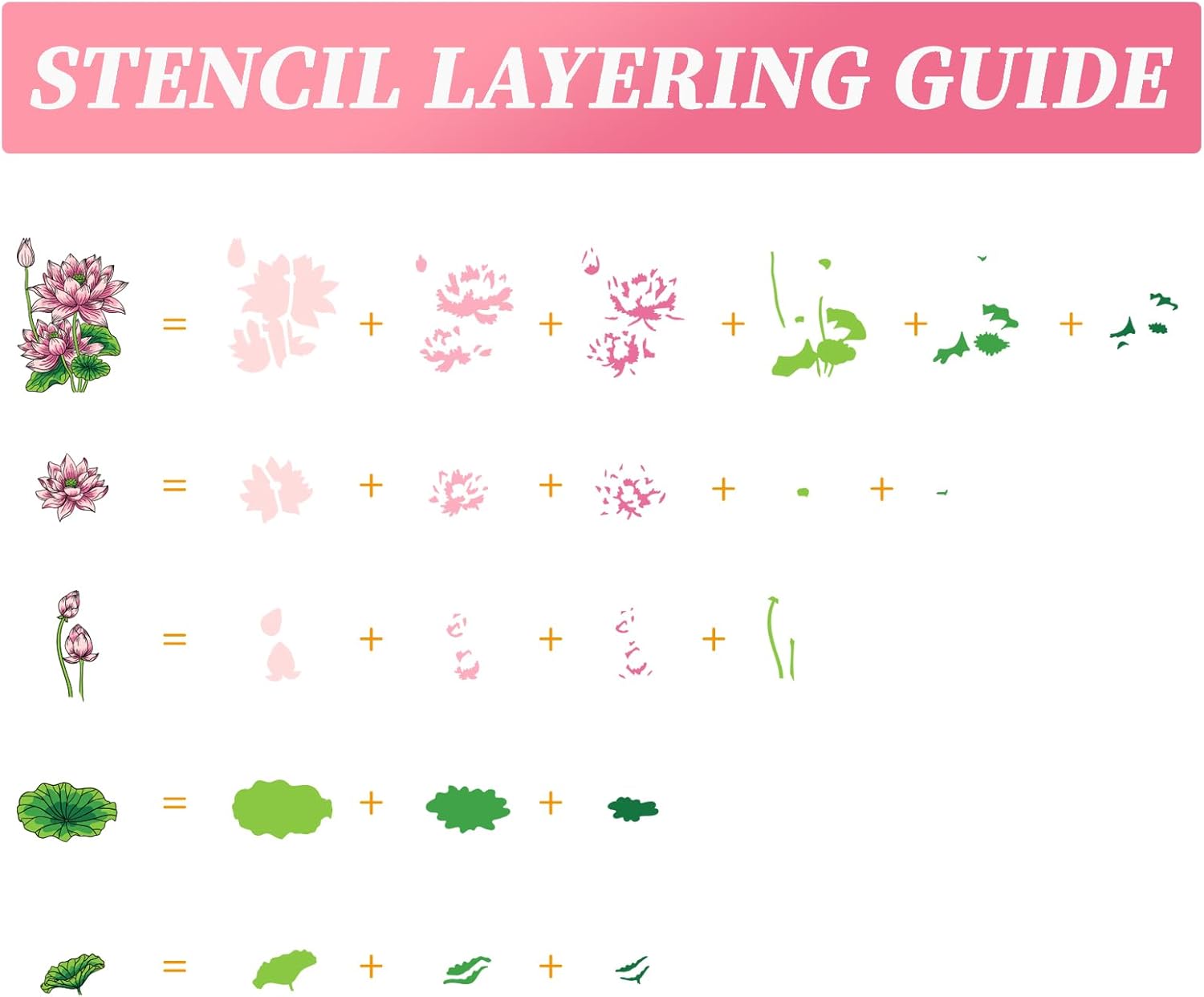 - Realistic Lotus DIY Set: The flower layering stencil set has lots of accessories for making flower and leaf shapes. Stamp the flower outline on your card, use the stencil to add your preferred colors in layers, and cut the pattern with the cutting dies