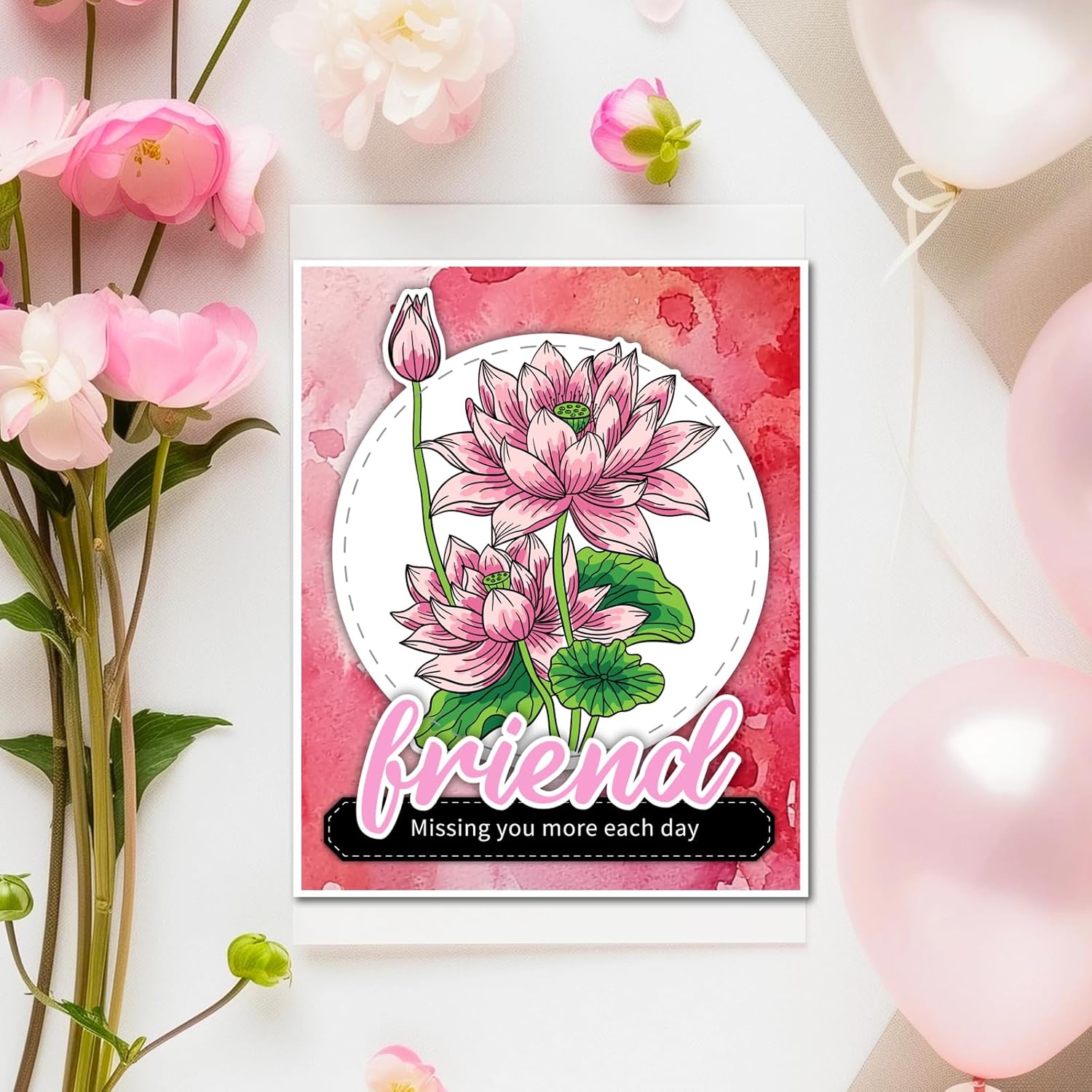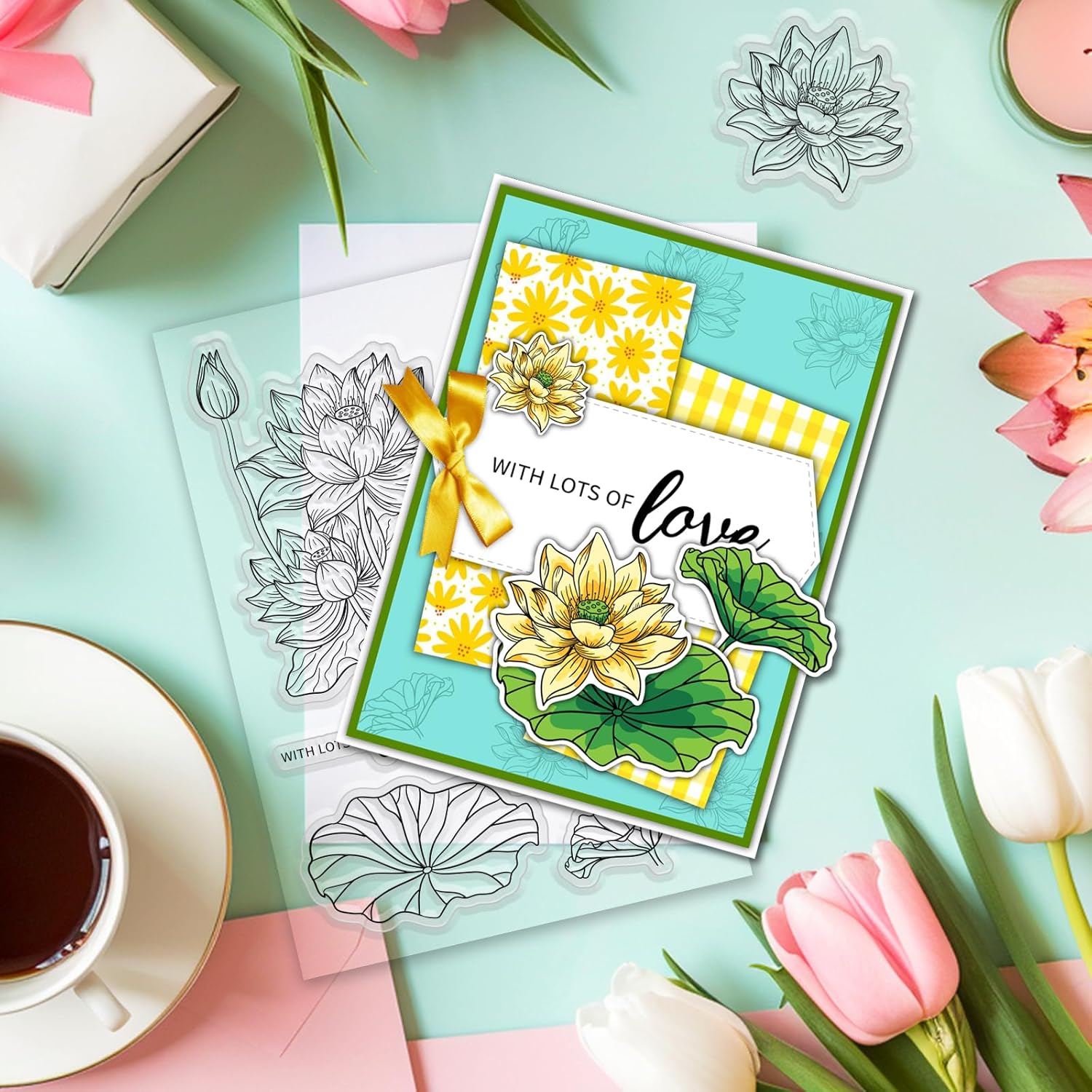 - Package Includes: You will receive 1 sheet clear stamps(6.3x4.33inch) with Lotus and leaves, 1 set cut dies for cutting flowers and leaves shapes, and 3 pcs PET stencils for creating color layering effects. The whole set can meet your DIY craft needs