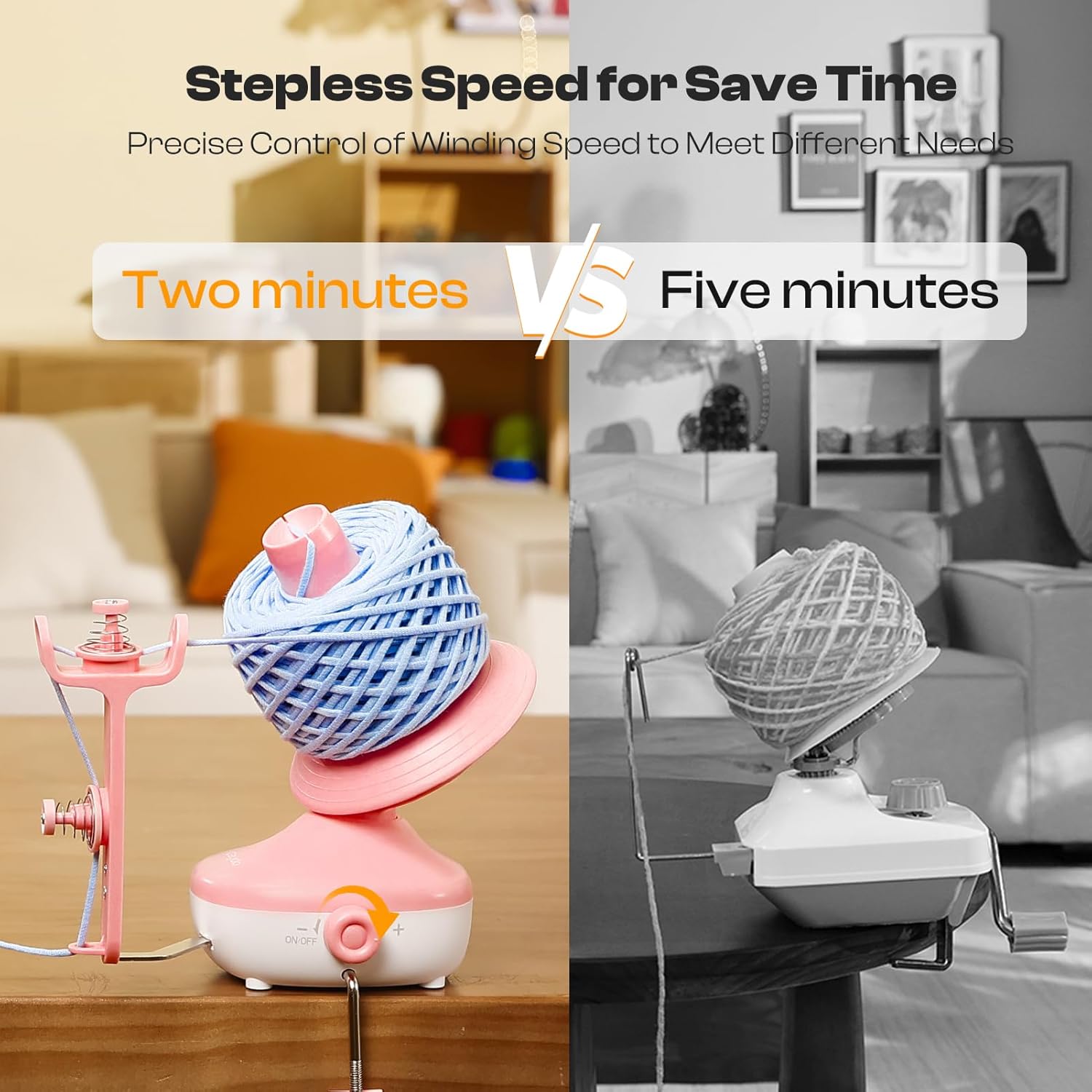 - Adjustable Winding Speed: The 3rd-Gen stepless speed with an ergonomic control knob allows you to precisely adjust the winding speed according to your needs, accommodating different types of yarns and winding speed requirements for maximum efficiency and effect