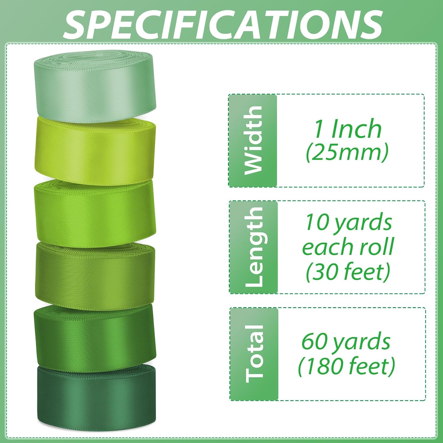 - 【What's Include】:6 rolls 1 inch wide single-faced green ribbon measures 10 yards (30 feet) each roll, 60 yards (180 feet) in total