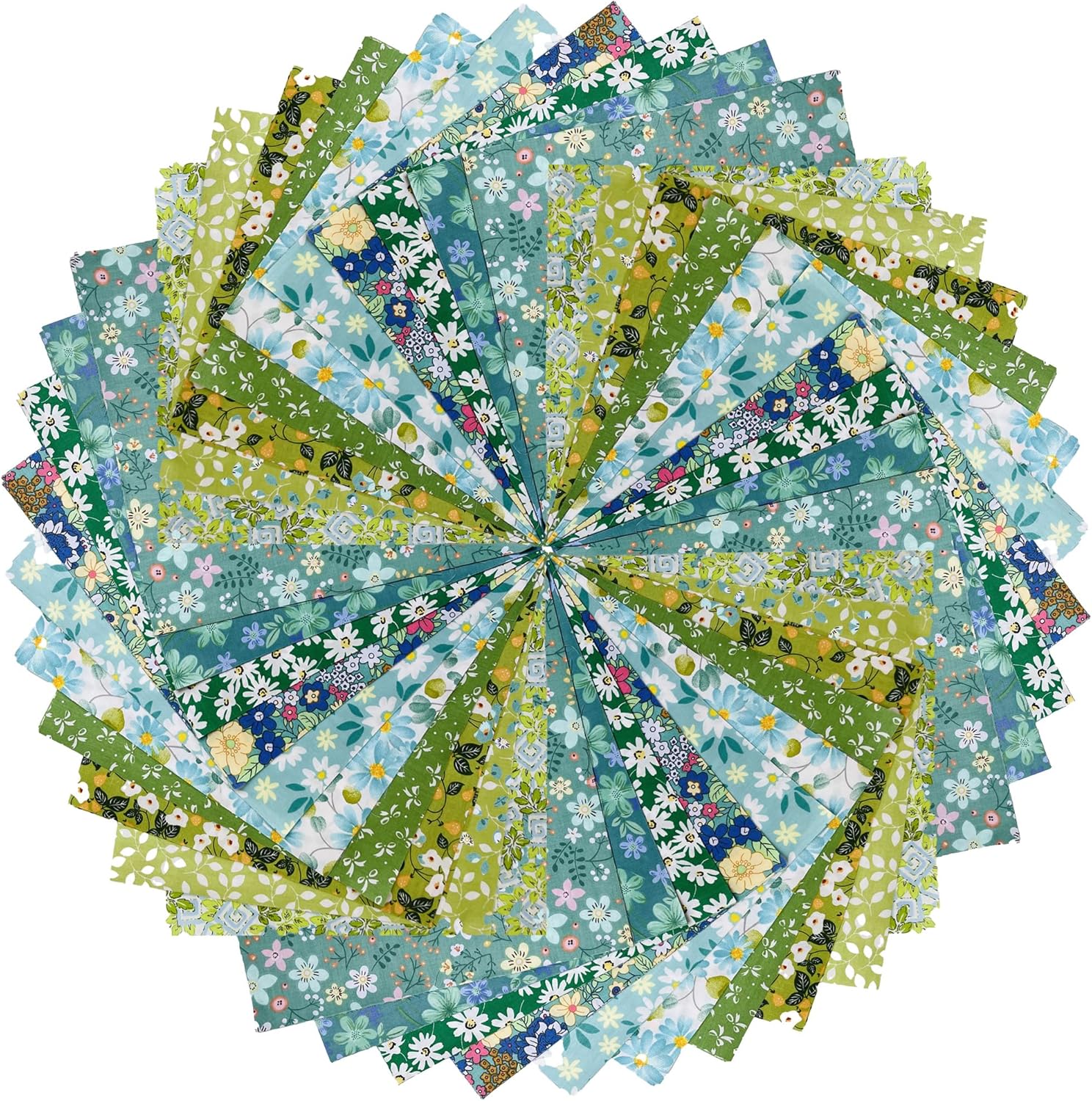 - Material and Size: These quilting fabric are made of 100% high-quality cotton, featuring soft and strong fabric bundles. Each sheet measures 5 x 5 inches. This set includes 50 pieces of green printed fabric squares, providing a variety of colors to satisfy your multiple craft sewing needs.