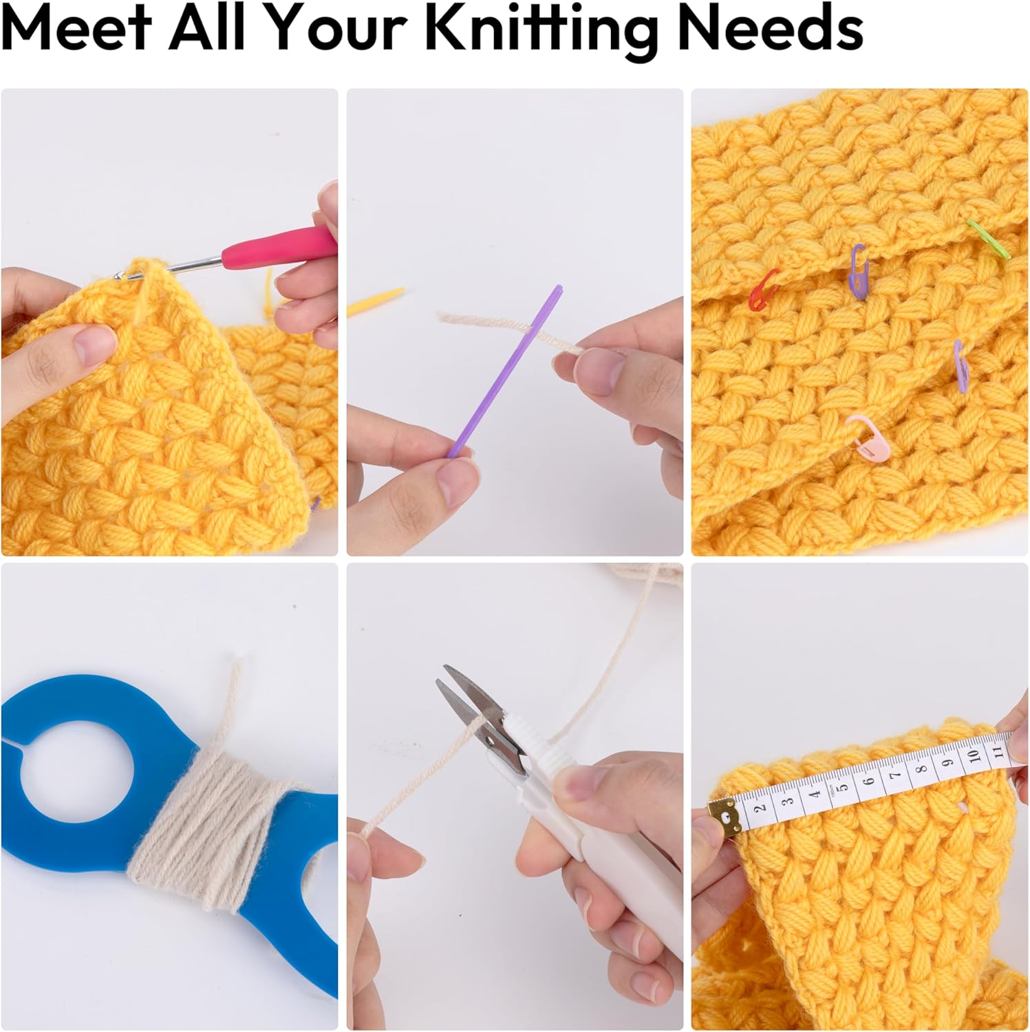 - Complete Crochet Kit: The yarn winder crochet kit includes 1 electric yarn winder, 8 ergonomic crochet hooks, 1 winding board, 20 stitch holders, 20 stitch markers, 3 big needles, 4 needle protectors, 2 crochet rings, 2 thimbles, 2 needle threaders, 4 gold pins, 1 scissors, 2 row counters, 1 tape measure. Meet all your knitting needs
