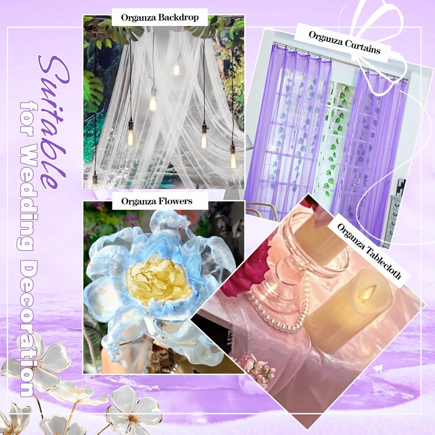 VACVELT Sheer Organza Fabric by The Yard, 60 Inch Wide Light Purple Organza Fabric Bolt Bridal Sheer Tulle Fabric, Silk Organza Fabric Roll for Wedding Party Decorations Backdrop Curtain (2 Yards)
