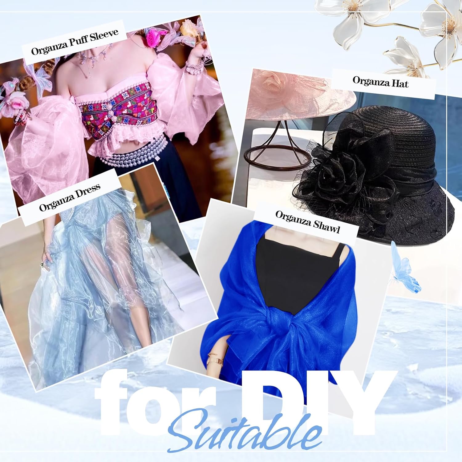 - What Will You Receive: 2 yards organza fabric (Pre-cut), Size: 72 x 60 Inch (L*W). Available Color: Gold, White, Royal Blue, Rose Gold, Black, Red, Hot Pink, Light Pink, Light Purple, Light Blue. You can give full play to your handicraft ability and creativity