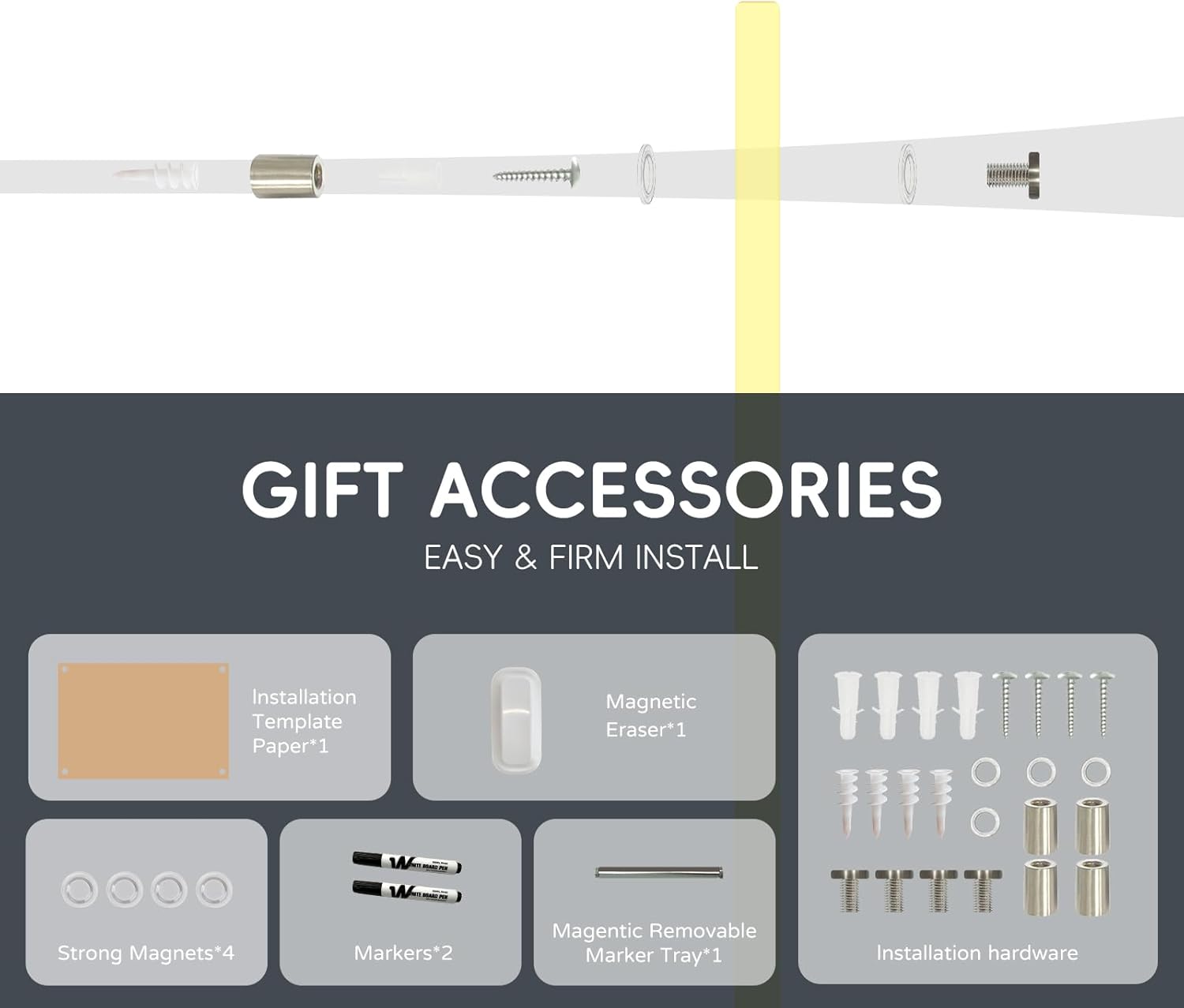- Enhanced Functionality: Our magnetic glass whiteboard comes with 4 strong magnets, 2 markers, 7 magnetic eraser, and a magnetic removable aluminum marker tray, offering everything you need for an efficient and organized workspace. The powerful magnets ensure your documents stay securely posted.