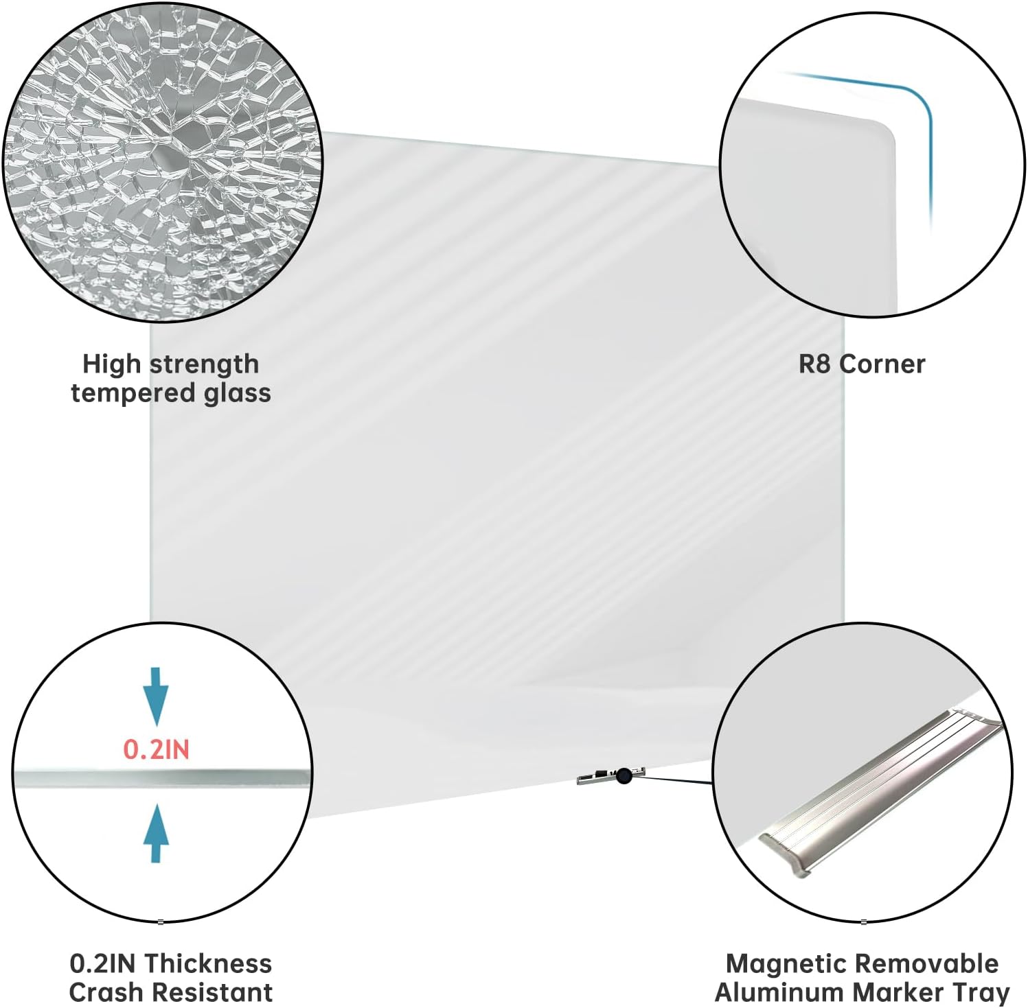 - Enhanced Functionality: Our magnetic glass whiteboard comes with 4 strong magnets, 2 markers, 5 magnetic eraser, and a magnetic removable aluminum marker tray, offering everything you need for an efficient and organized workspace. The powerful magnets ensure your documents stay securely posted.
