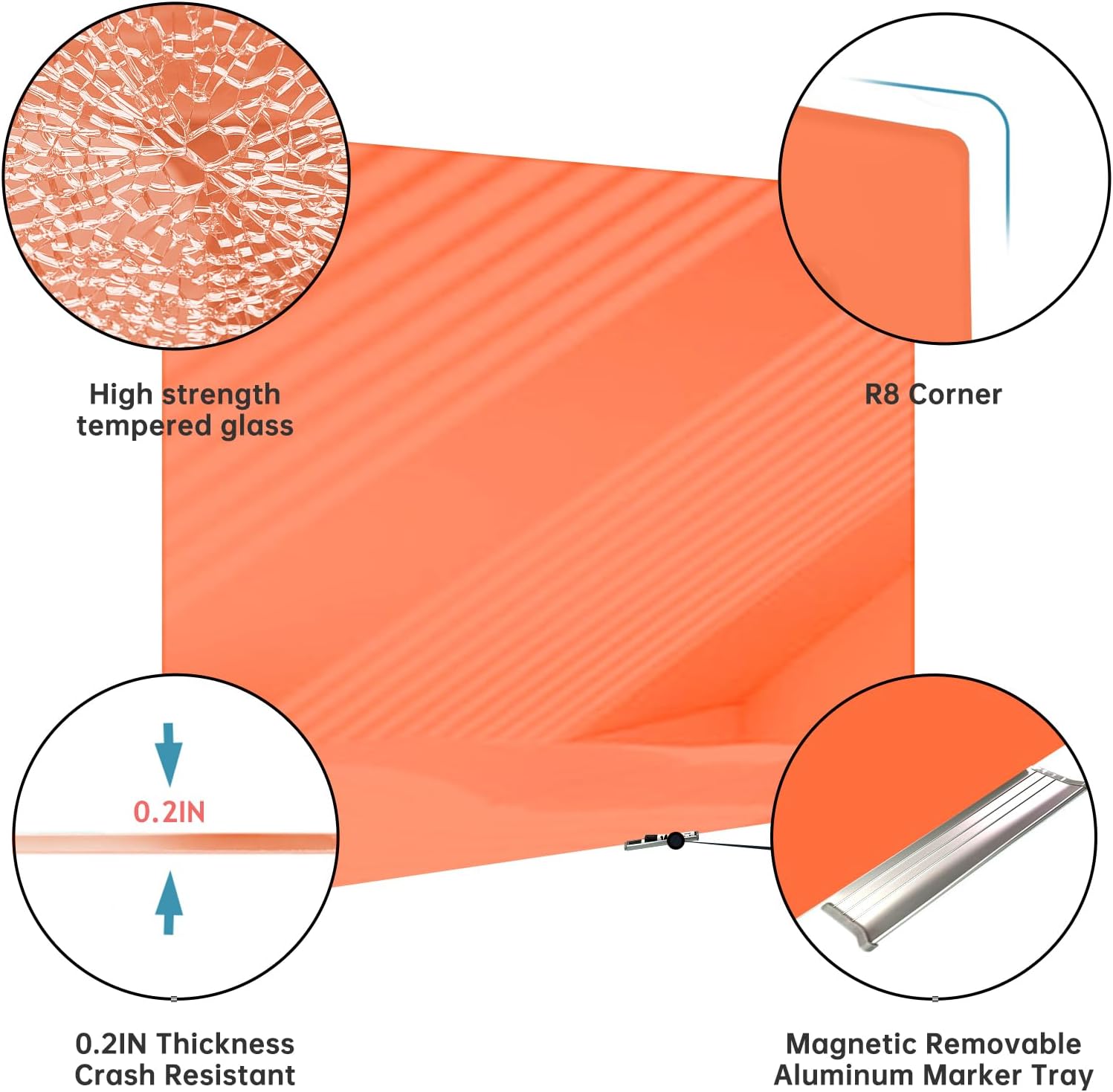 Magnetic Glass Whiteboard - Glass Dry Erase Board 48"x36" Large Frameless Glass Board for Walls Office School and Home, Orange