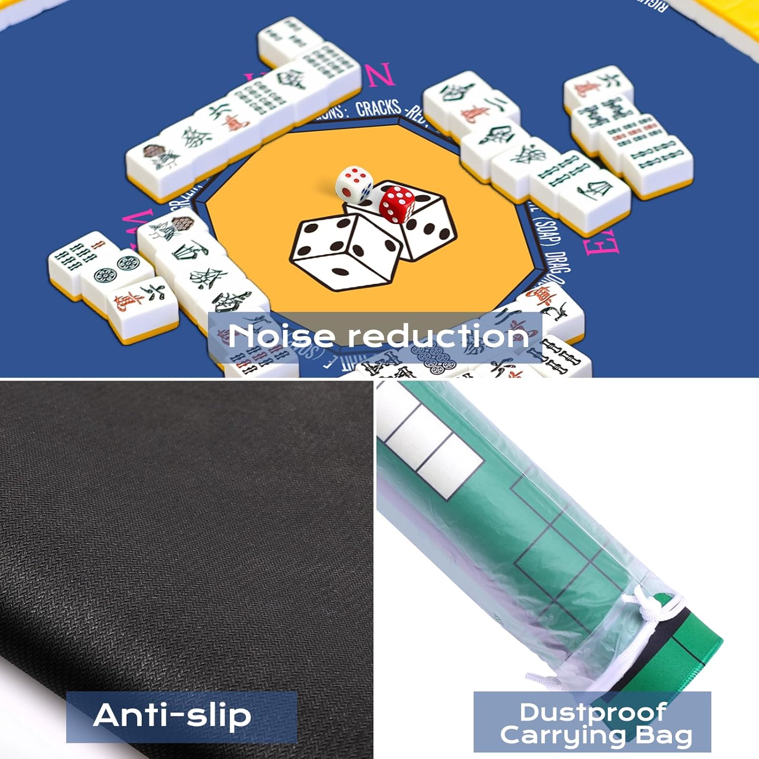 - ✅NOISE-REDUCING PROTECTION: The 0.1" thick rubber foam layer dampens tile clatter and shields your table from scratches caused by mahjong tiles, racks, or chips. Its soft yet resilient surface combines quiet play with table preservation.