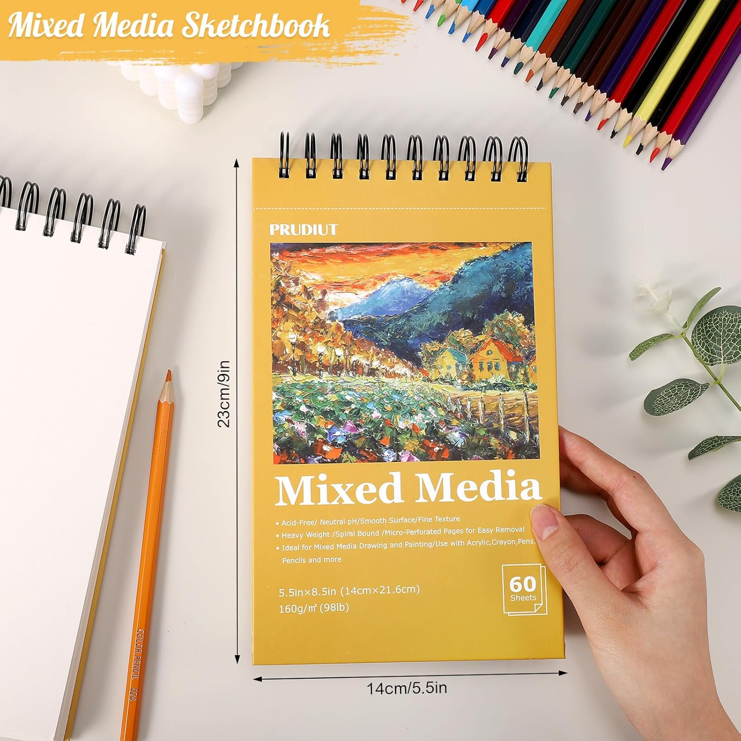 - 【Premium Mixed Media Sketchbook Duo】2 artist-grade mixed media sketchbooks (5.5×8.5" small sketchbook size), each with 60 sheets of heavyweight paper. Portable for outdoor sketching, studio work, or daily journaling—ideal for students, hobbyists, and pros