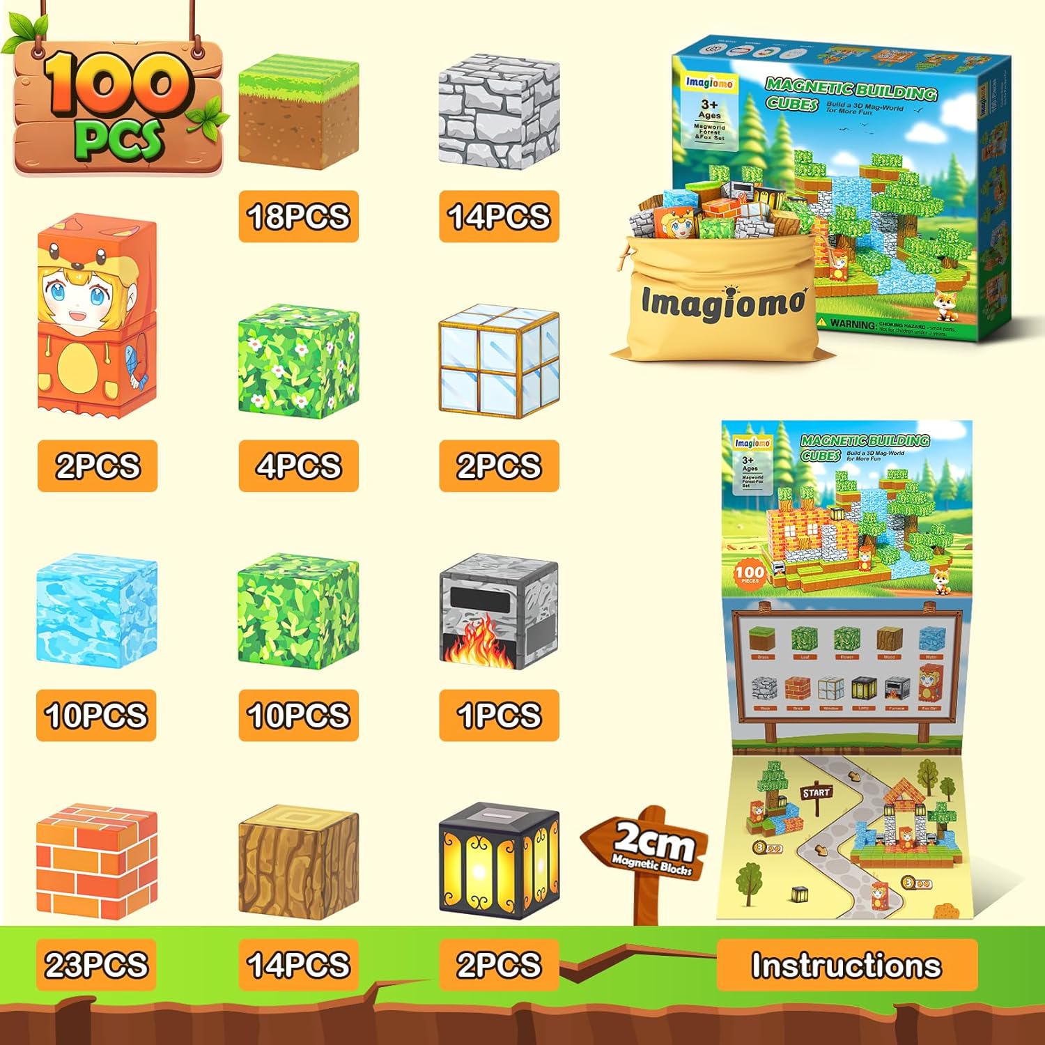 100PCS Magnetic Blocks - Build Mine Magnet World Froest Fox Adventure Set, Magnetic Toys Kids Games for Boys & Girls Age 3-5 5-7 8-12, Sensory Construction Outdoor Toys for Toddlers Birthday Gifts