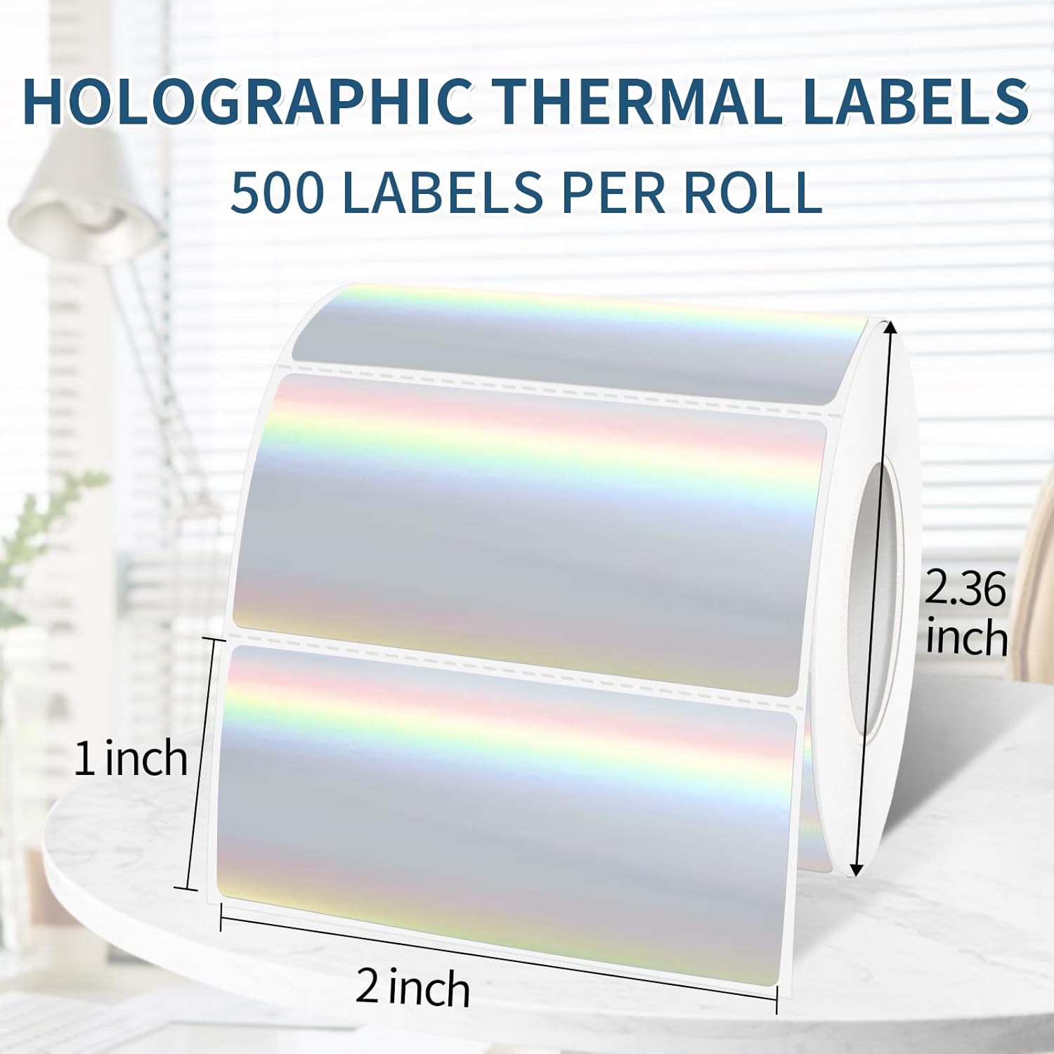 1" x 2" Holographic Thermal Label Stickers,Printable Rainbow Glitter Thermal Printer Sticker Labels for Gift Wrapping, Self-Adhesive Name Price Tag DIY Custom Logo Design (500 pcs)