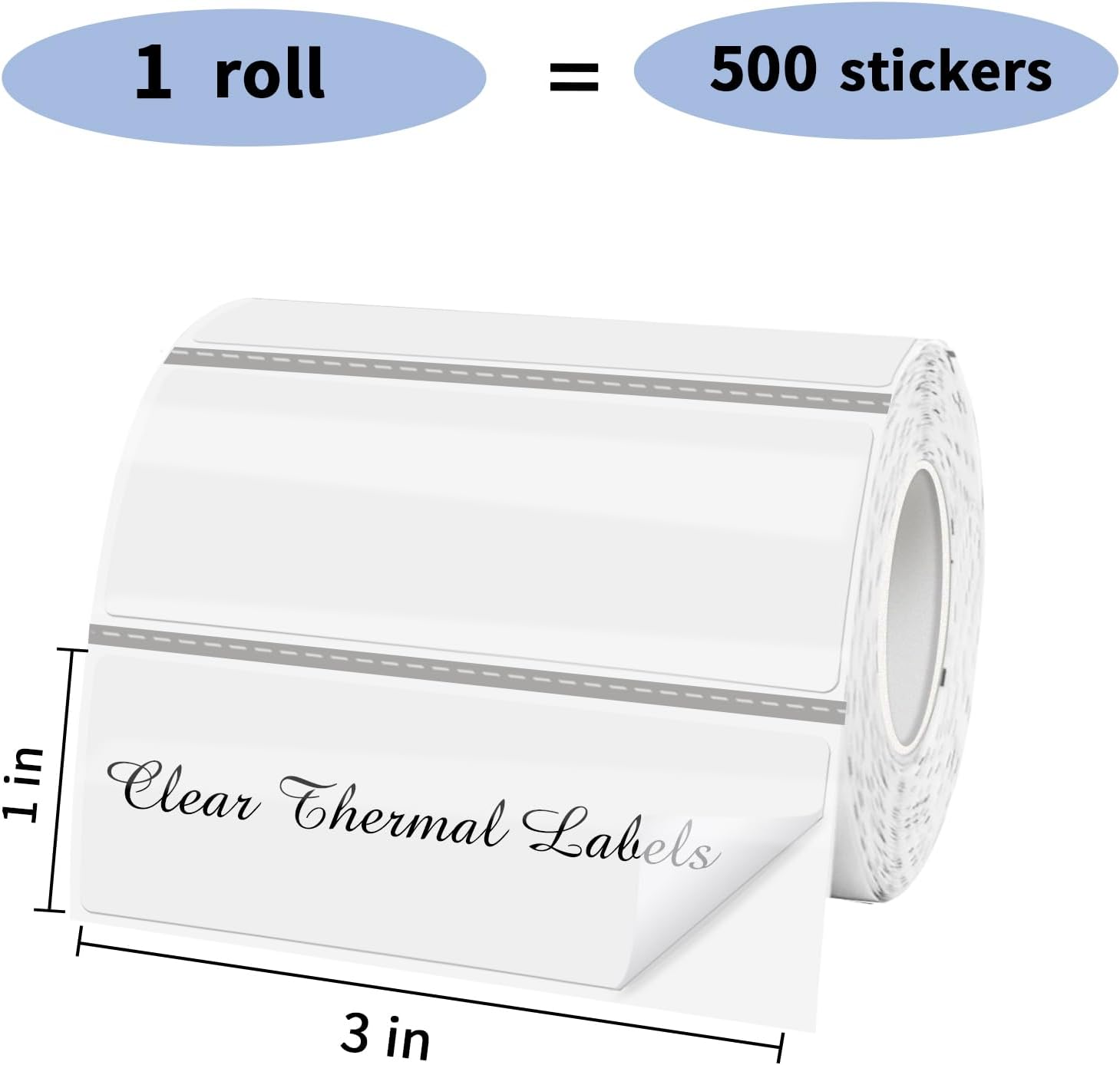 1" x 3" Transparent Thermal Label Stickers,Waterproof Thermal Printer Sticker Labels for Gift Wrapping, Self-Adhesive Name Price Tag DIY Custom Logo Design (500 pcs,Clear)