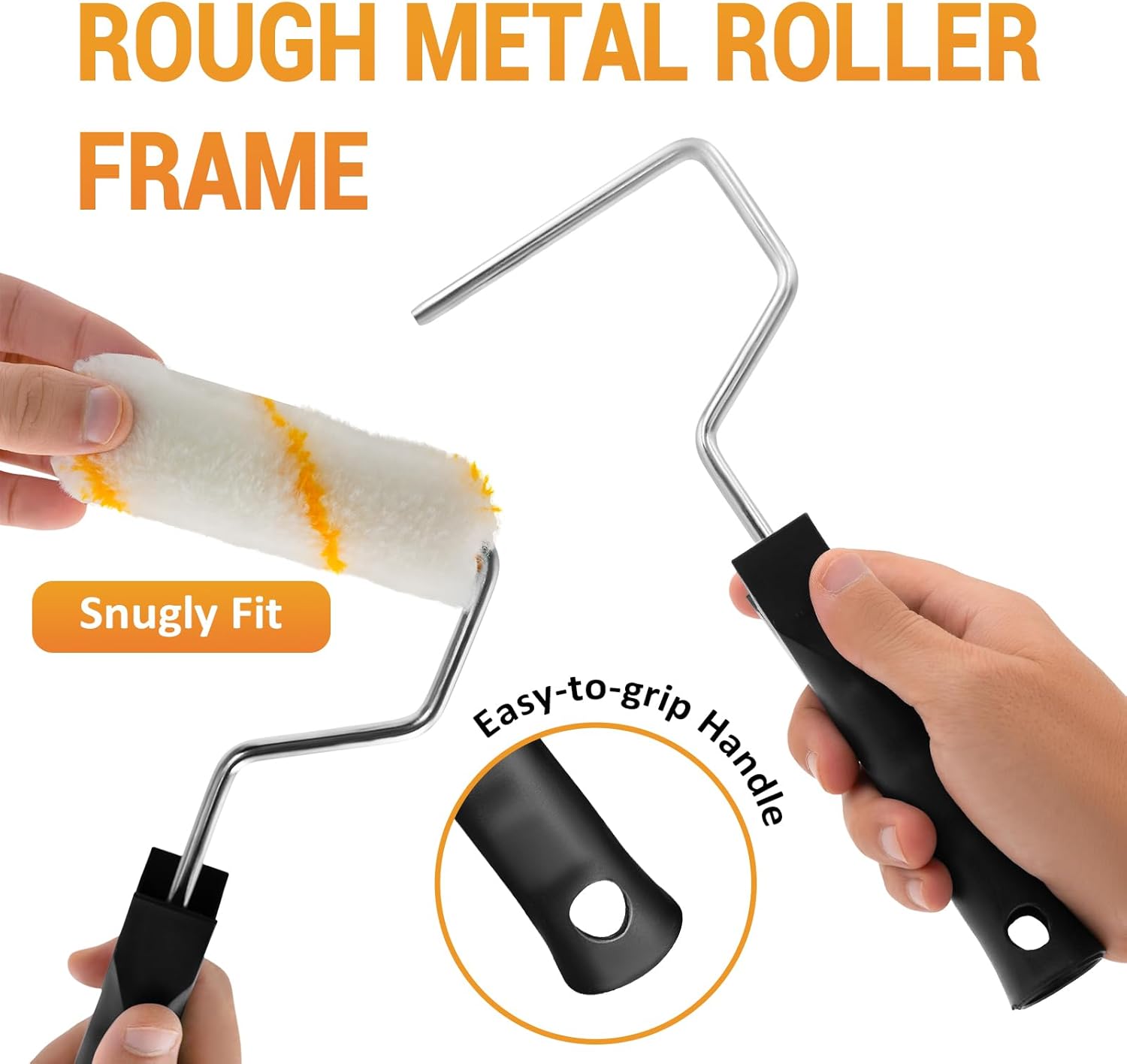 - Mini Painting Roller Kit: This kit includes a Roller Tray(4"), a Roller Frame (4"), and 8 Roller Covers (4"). It is suitable for painting narrow, small and hard to reach spaces.