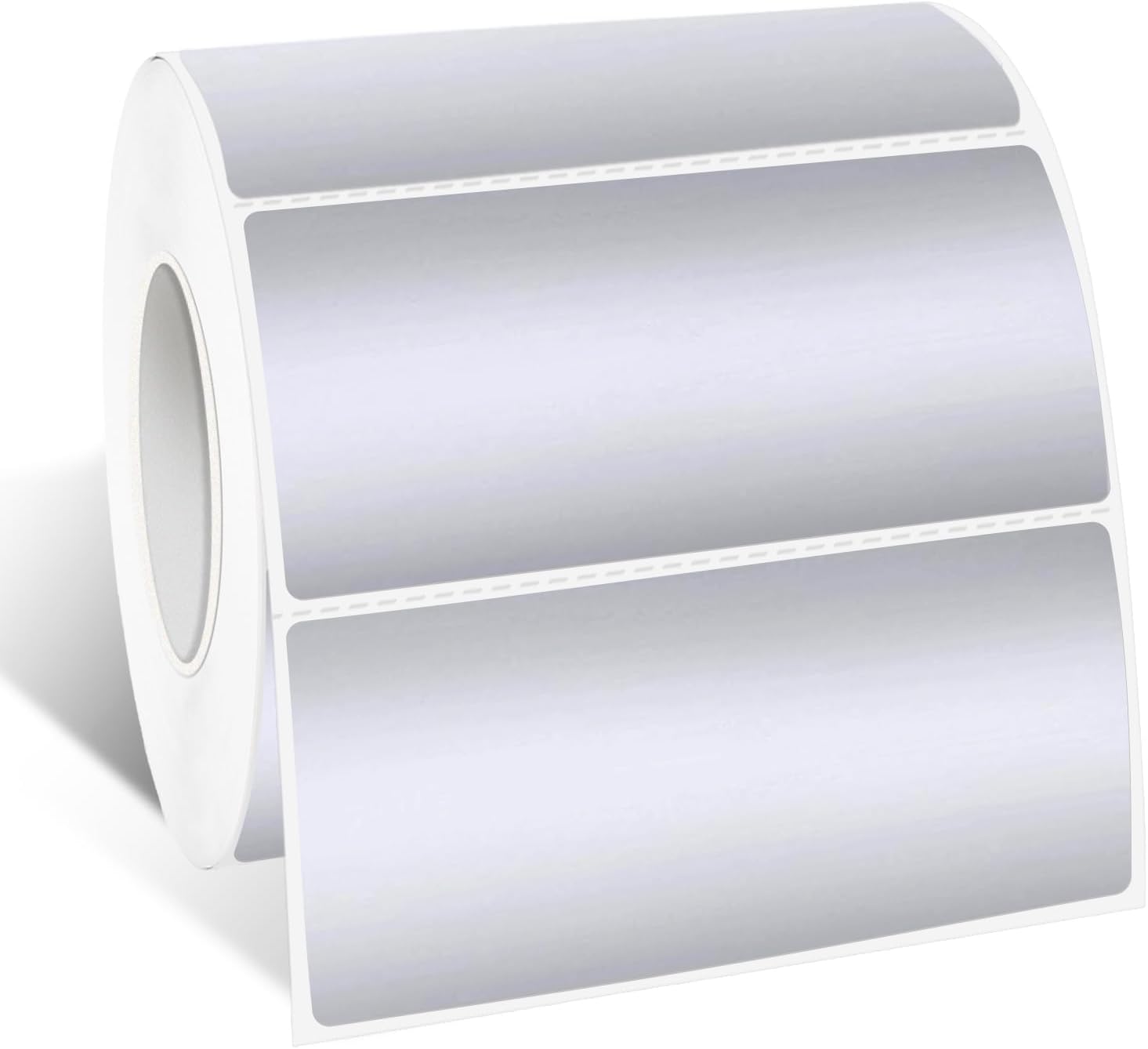1" x 2" Silver Thermal Label Stickers,Waterproof Thermal Printer Sticker Labels for Gift Wrapping, Self-Adhesive Name Price Tag DIY Custom Logo Design (500 pcs,Silver)