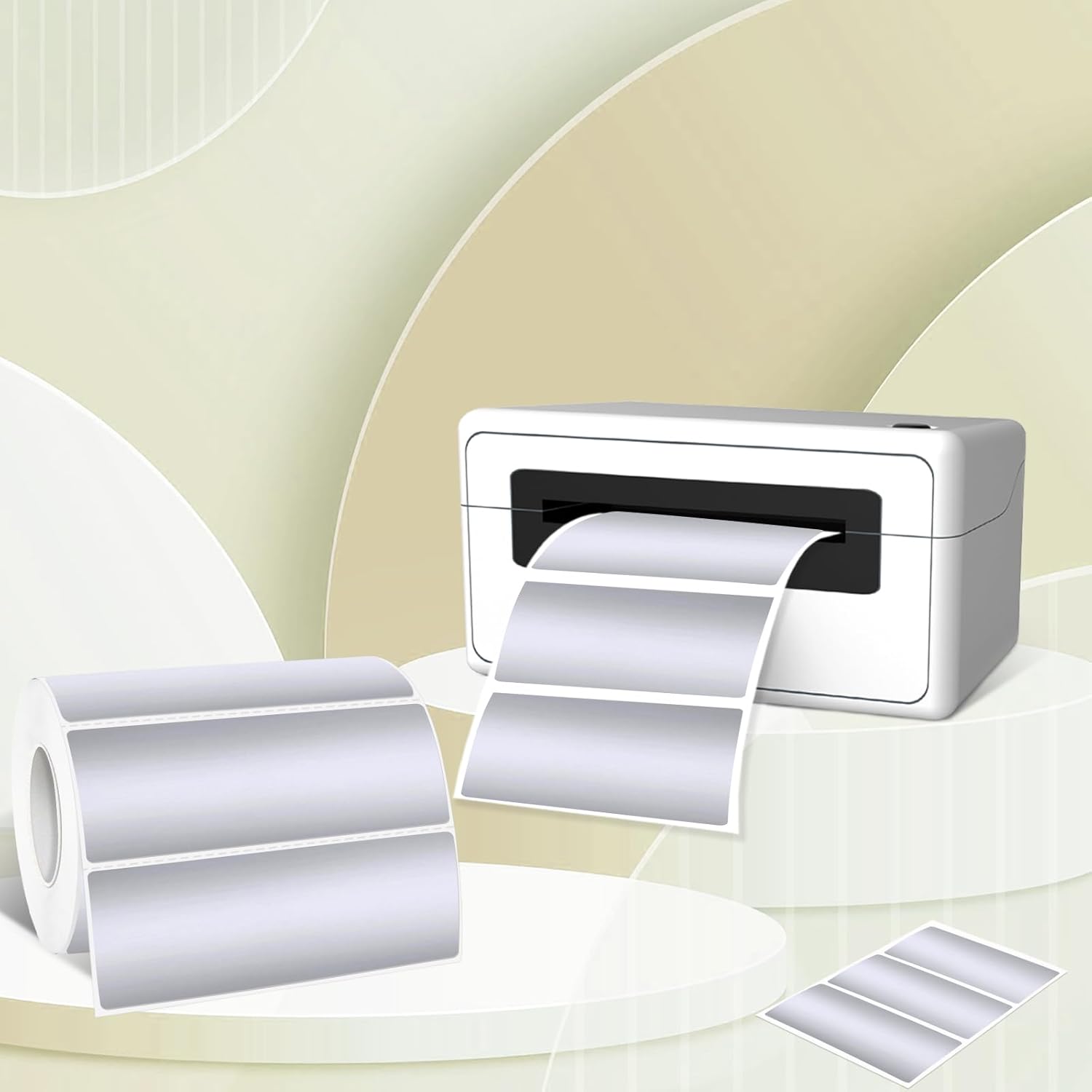 1" x 3" Silver Thermal Label Stickers,Waterproof Thermal Printer Sticker Labels for Gift Wrapping, Self-Adhesive Name Price Tag DIY Custom Logo Design (500 pcs,Silver)