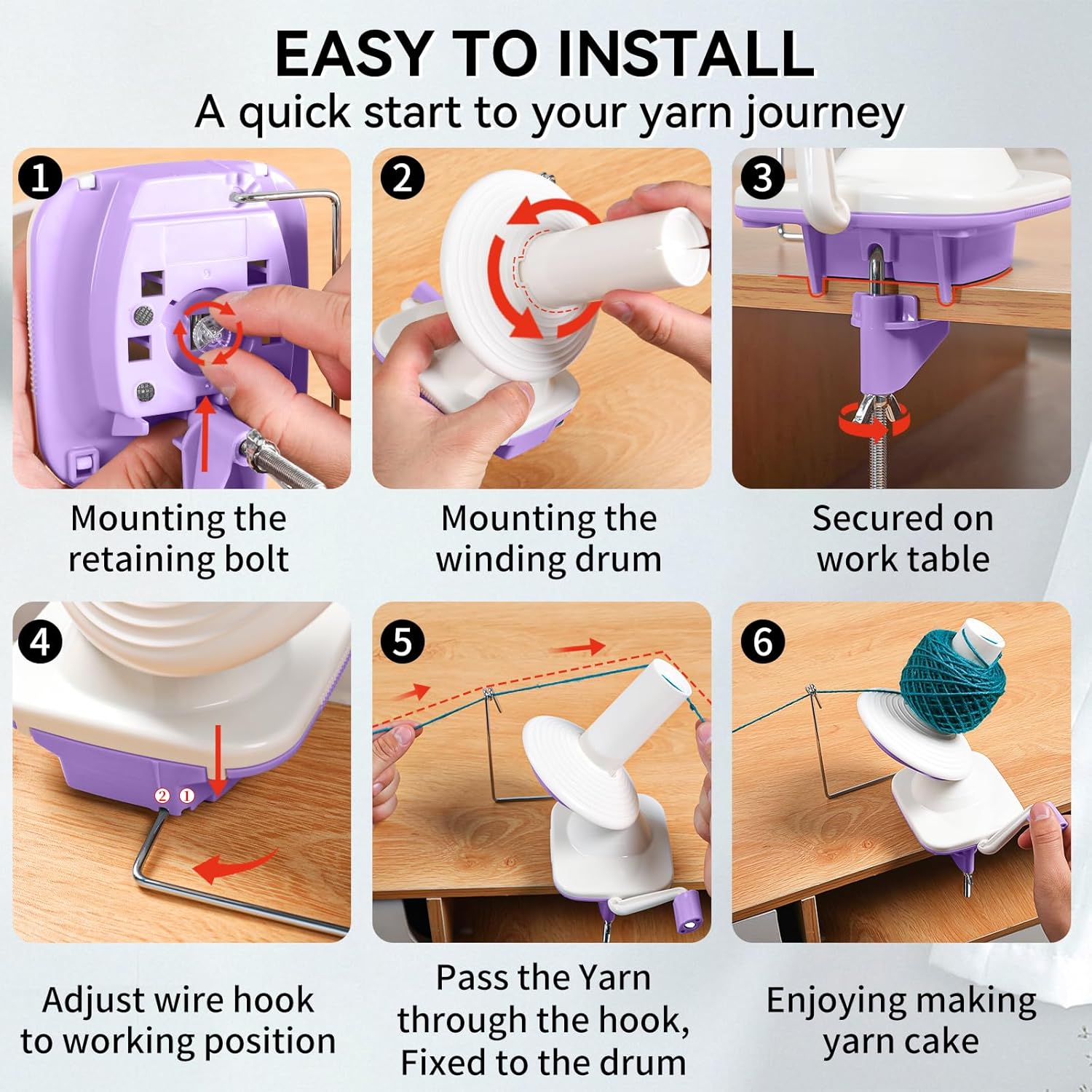 - 【Easy to Install】The yarn winder for crocheting requires only five steps from installation to use, quickly start your knitting journey. Easy to install, reducing your installation woes; Comes with a detailed full-color instruction manual to get you started with the yarn winder faster