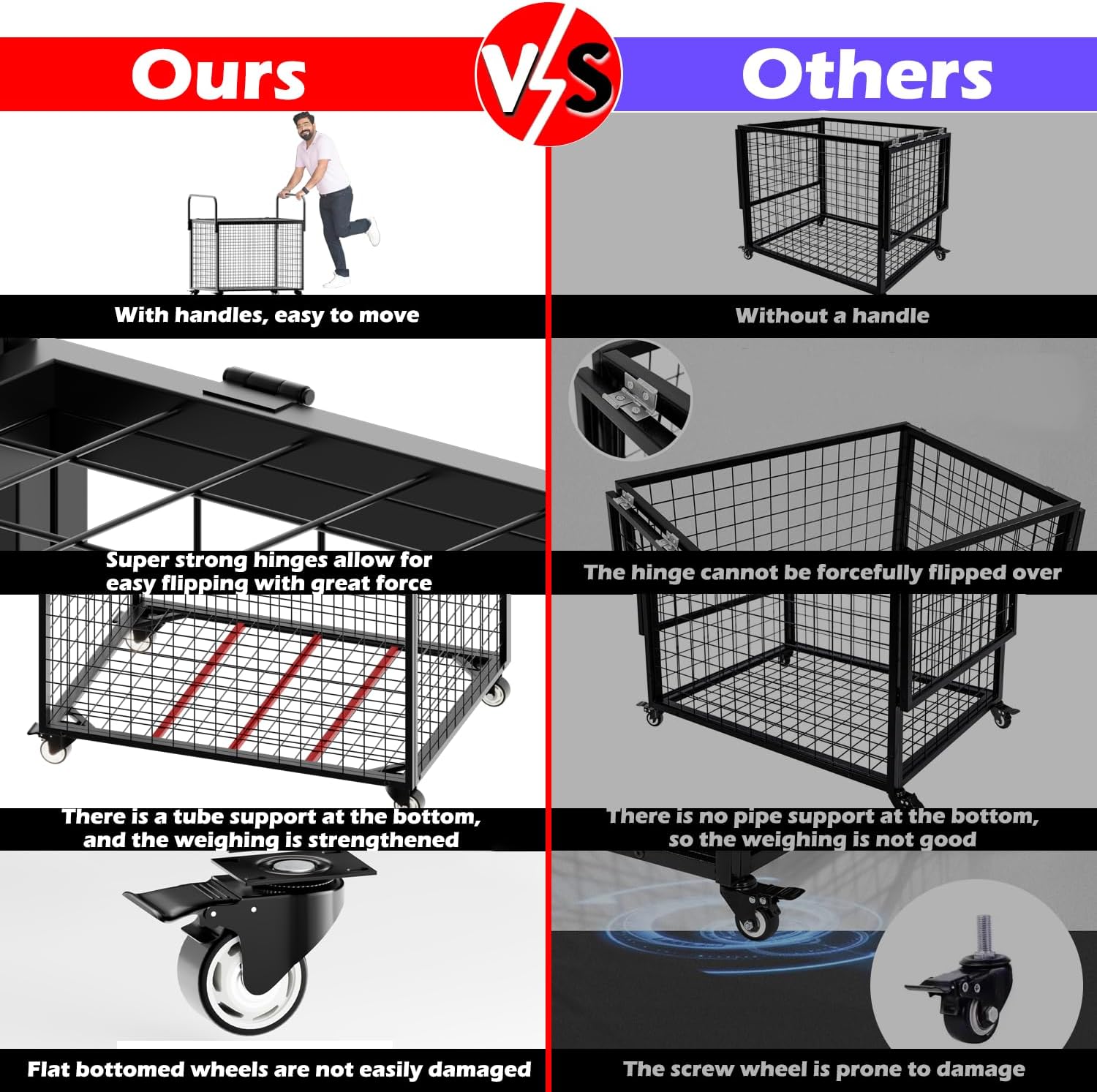 - Push Handle Design- The left and right sides of the basketball holder are designed with handles, the whole height reaches 42in, which is suitable for most people, making the storage basket better to push and pull