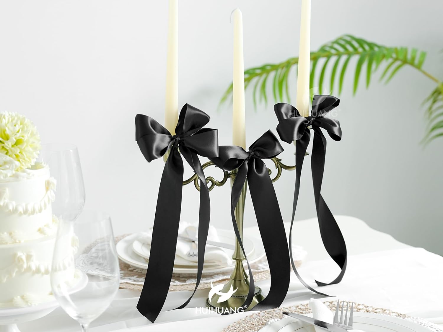 HUIHUANG Black Satin Ribbon 1-1/2 inch x 100 Yards Double-Faced Satin Ribbon for Flower Bouquet, Gift Wrapping, Eternal Roses, DIY Crafts, Bridal Shower Wedding Decor