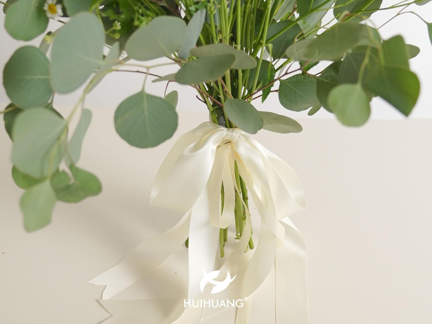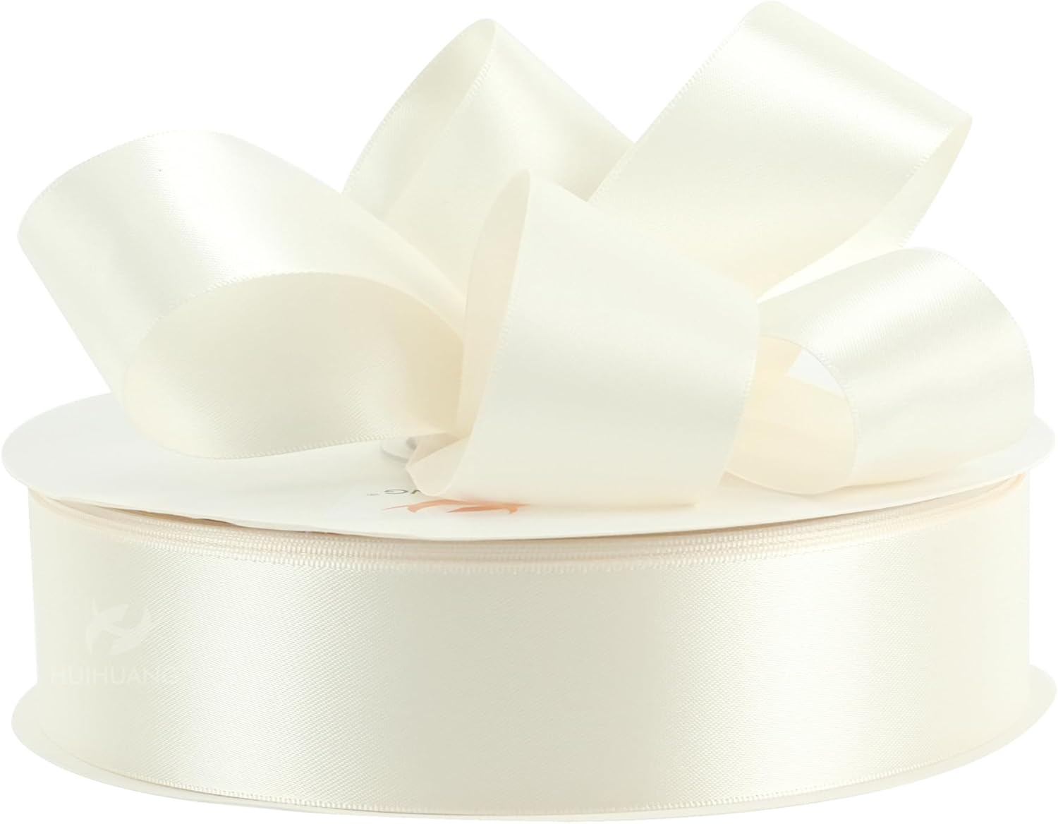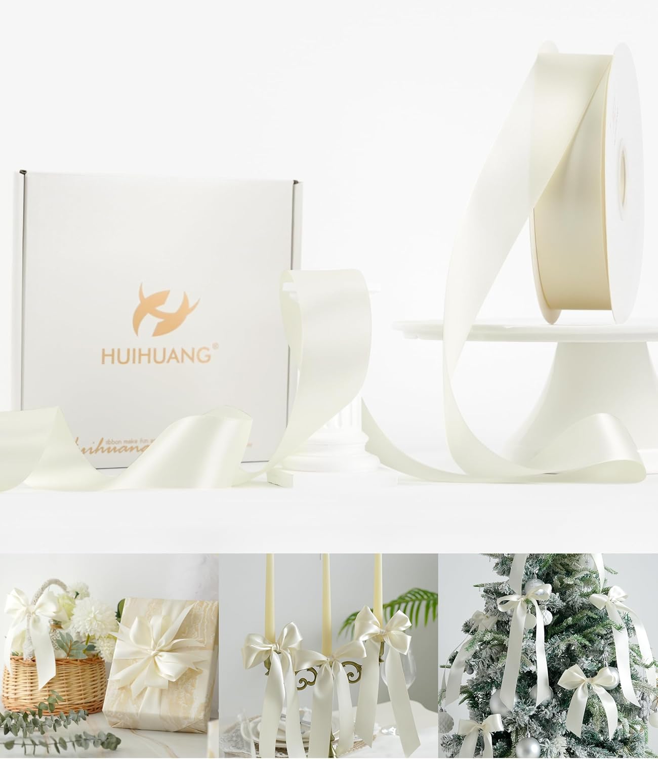 HUIHUANG Ivory Satin Ribbon 1-1/2 inch x 100 Yards Antique White Double-Faced Satin Ribbon for Flower Bouquet, Gift Wrapping, Eternal Roses, DIY Crafts, Bridal Shower Wedding Decor