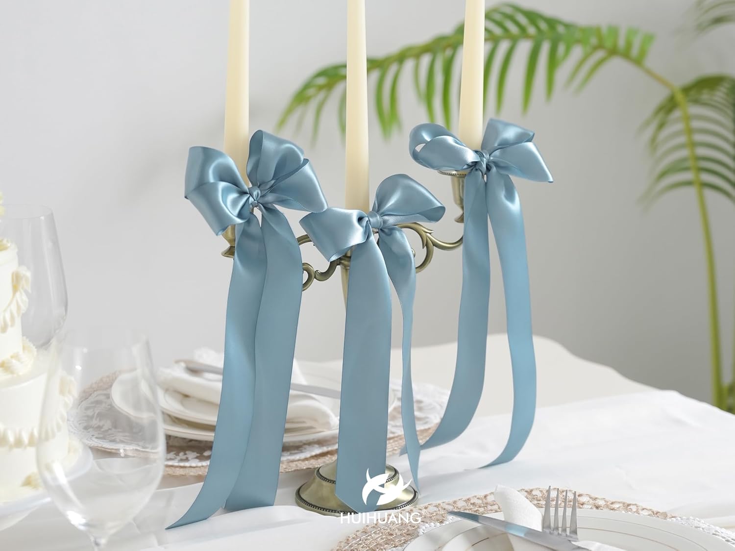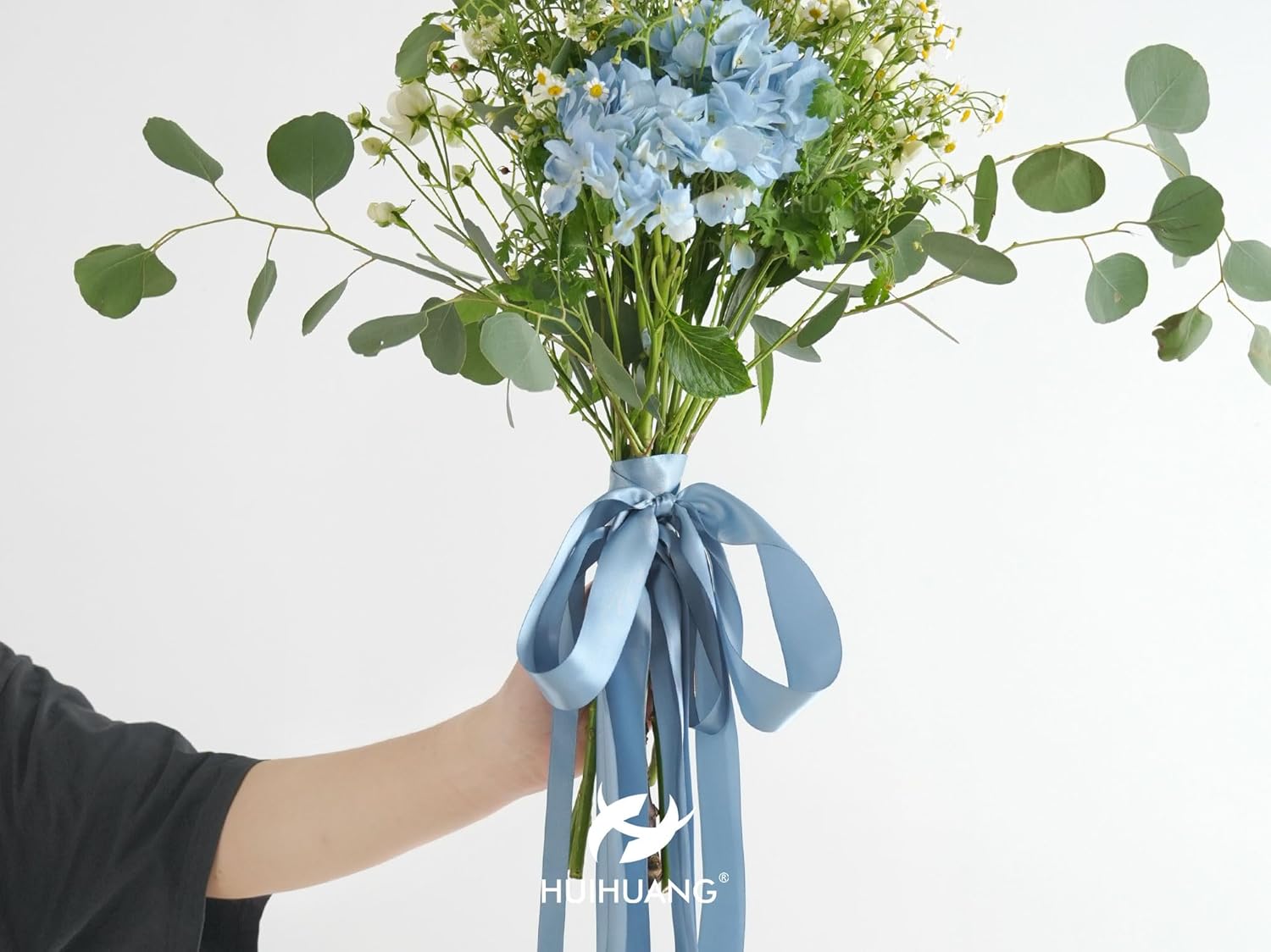 HUIHUANG Blue Satin Ribbon 1-1/2 inch x 100 Yards Dusty Blue Double-Faced Satin Ribbon for Flower Bouquet, Gift Wrapping, Eternal Roses, DIY Crafts, Bridal Shower Wedding Decor