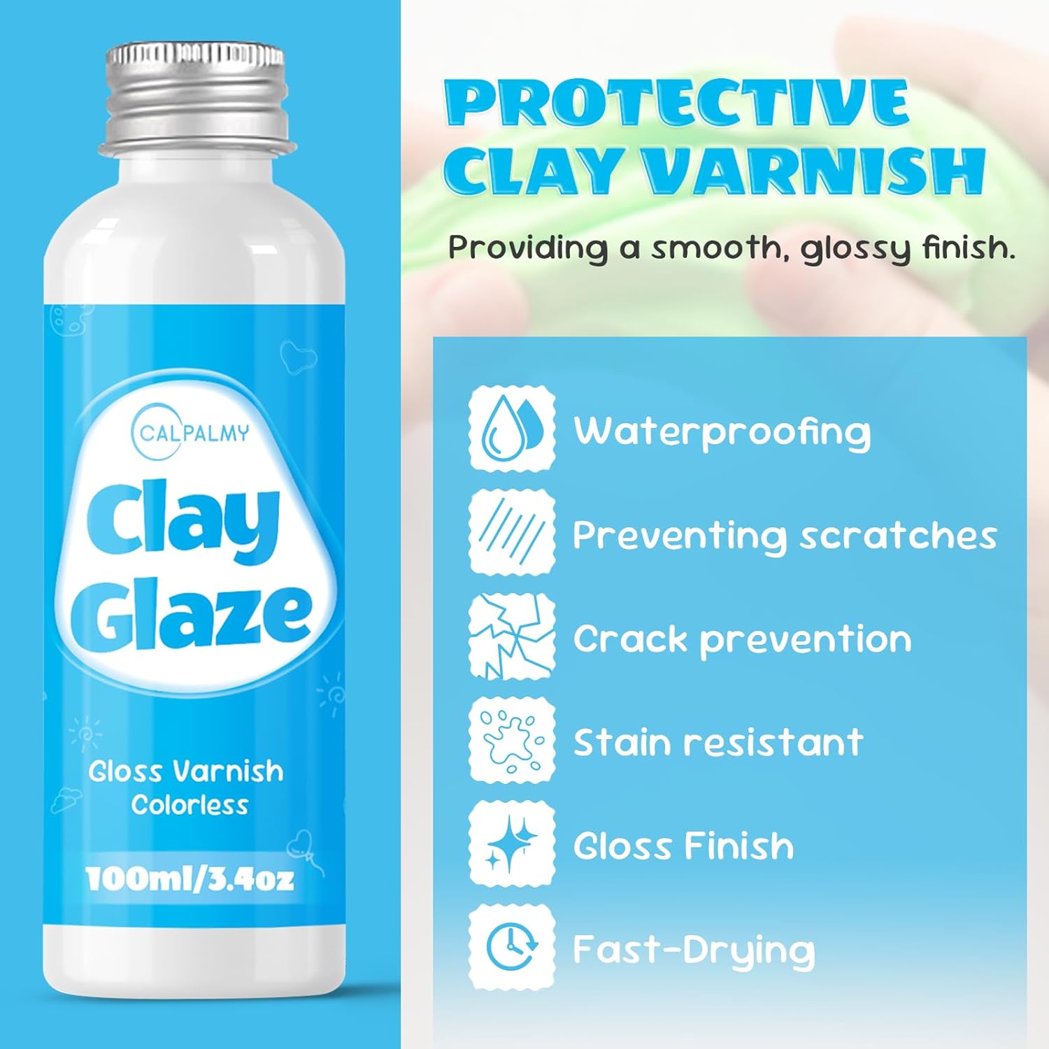 CALPALMY 100ml Gloss Glaze Varnish Kit for Air Dry Clay Sealer, Waterproof, Gloss Finish - Prevent Cracking and Scratches for Clay, Pottery, Ceramics, Acrylic Paint