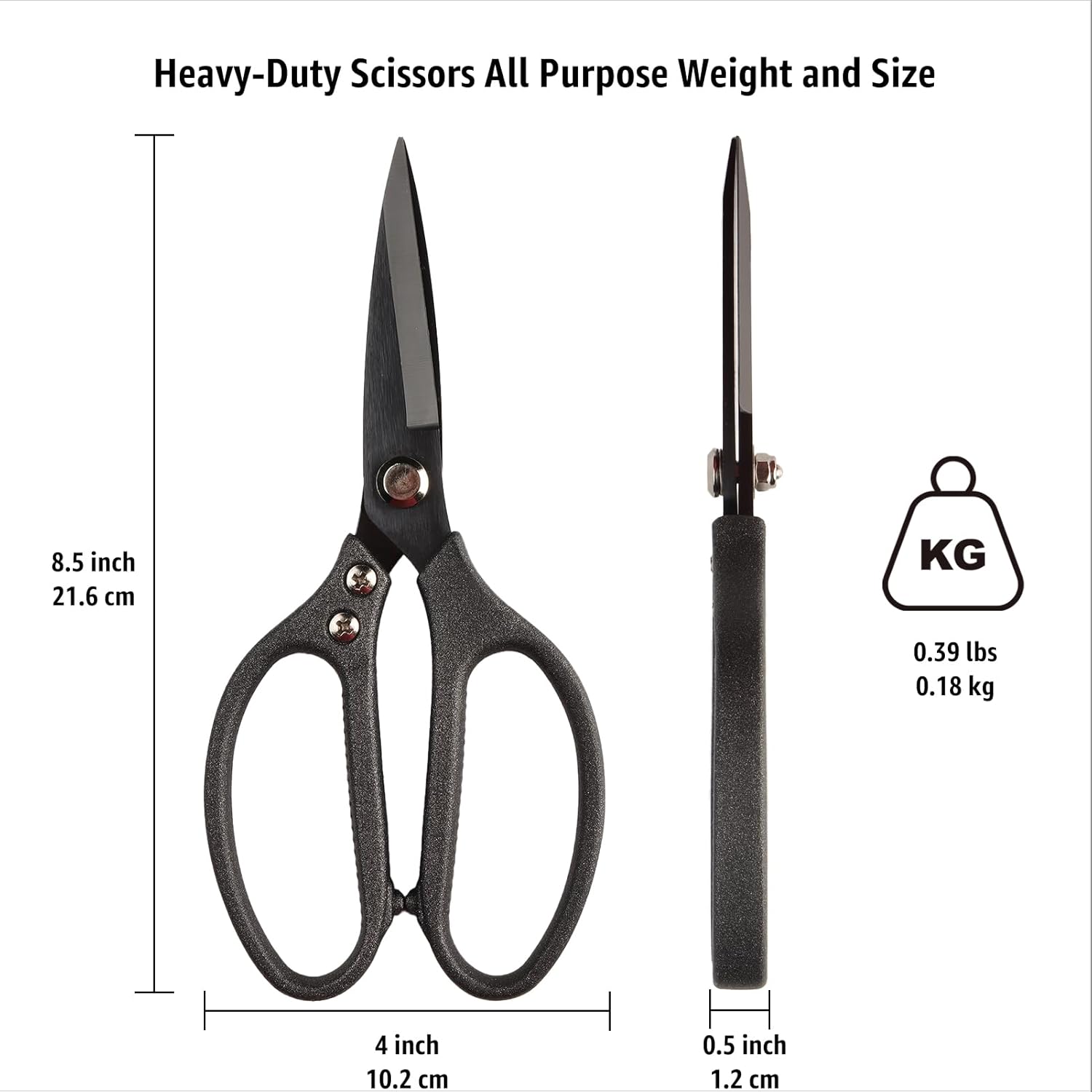- VERSATILE USE: 8.5-inch professional-grade multipurpose heavy-duty scissors designed for kitchen, office, sewing, craft, garage, workshop, industrial, garden bonsai pruning, and home cutting tasks