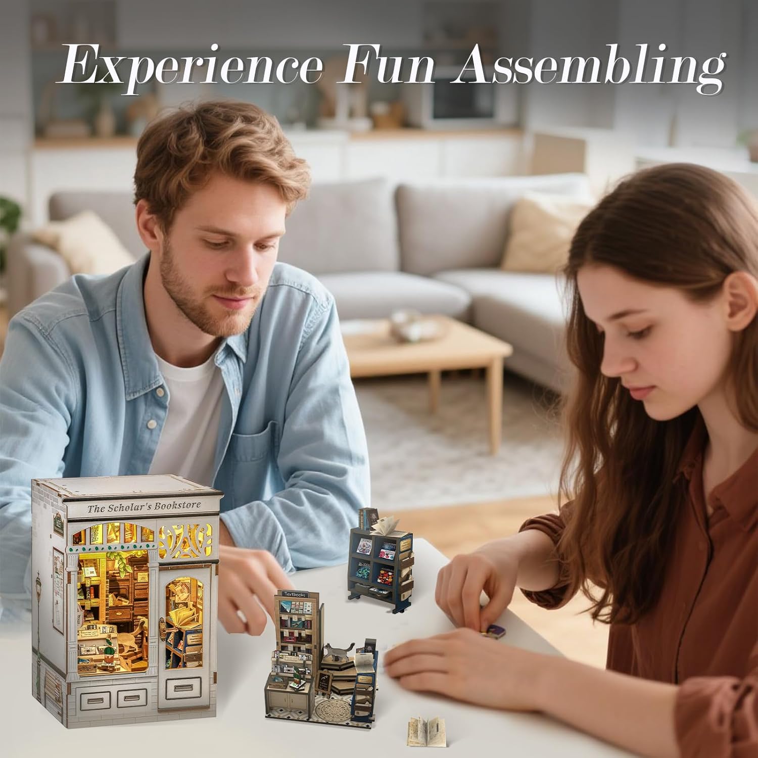 CUTEBEE Book Nook Kit - DIY Miniature House Dollhouse Kit for Adults and Teens, Booknook Tiny House Bookshelf Decor 3D Wooden Puzzle, Gifts for Family, Friends (The Scholar's Bookstore)