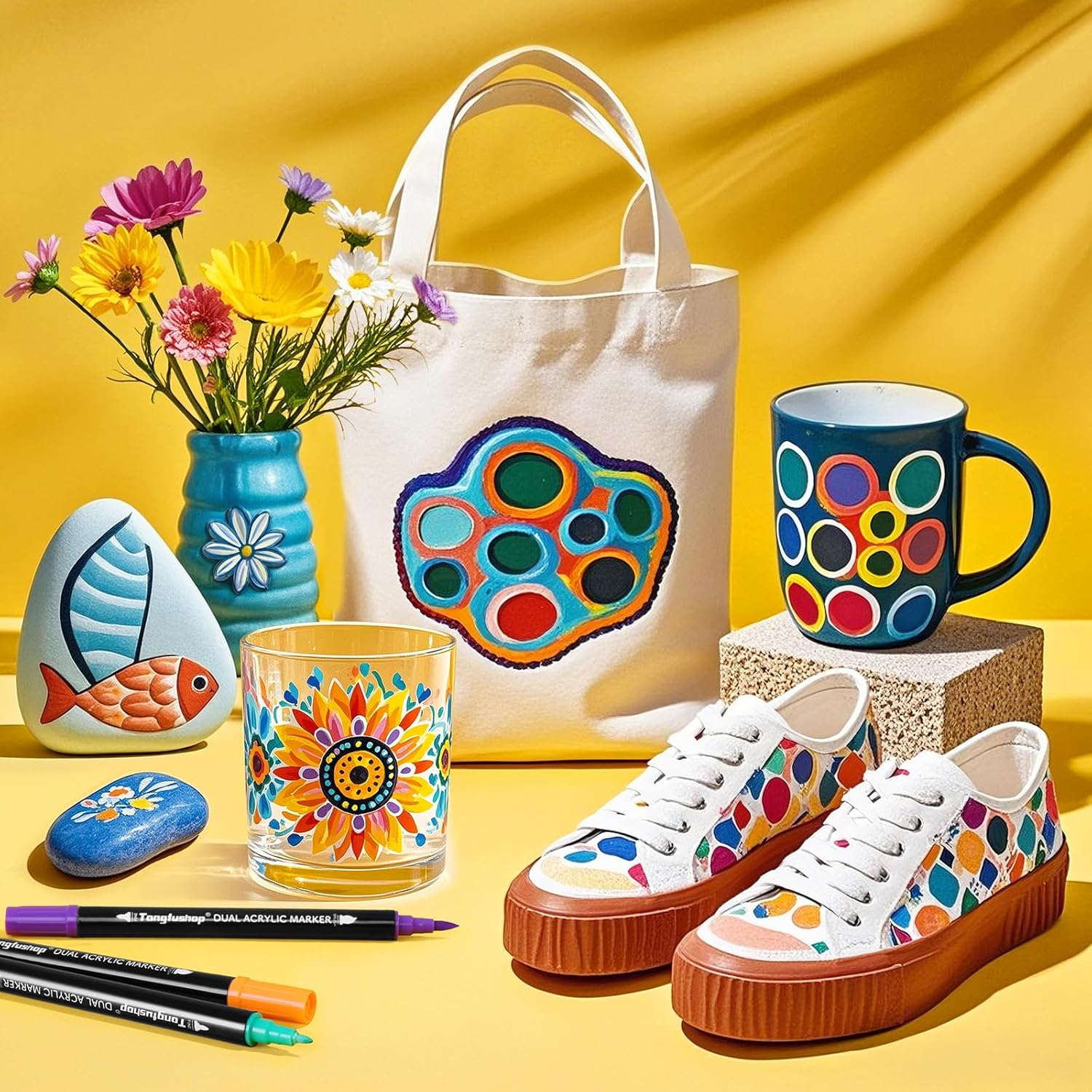 Tongfushop 72 Colors Acrylic Paint Markers, Dual Tip Acrylic Paint Pens with Brush Tip & Fine Tip, Wood Markers for Rock Painting, Wood, Canvas, Stone, Glass, Ceramic, DIY Crafts, Art Supplies