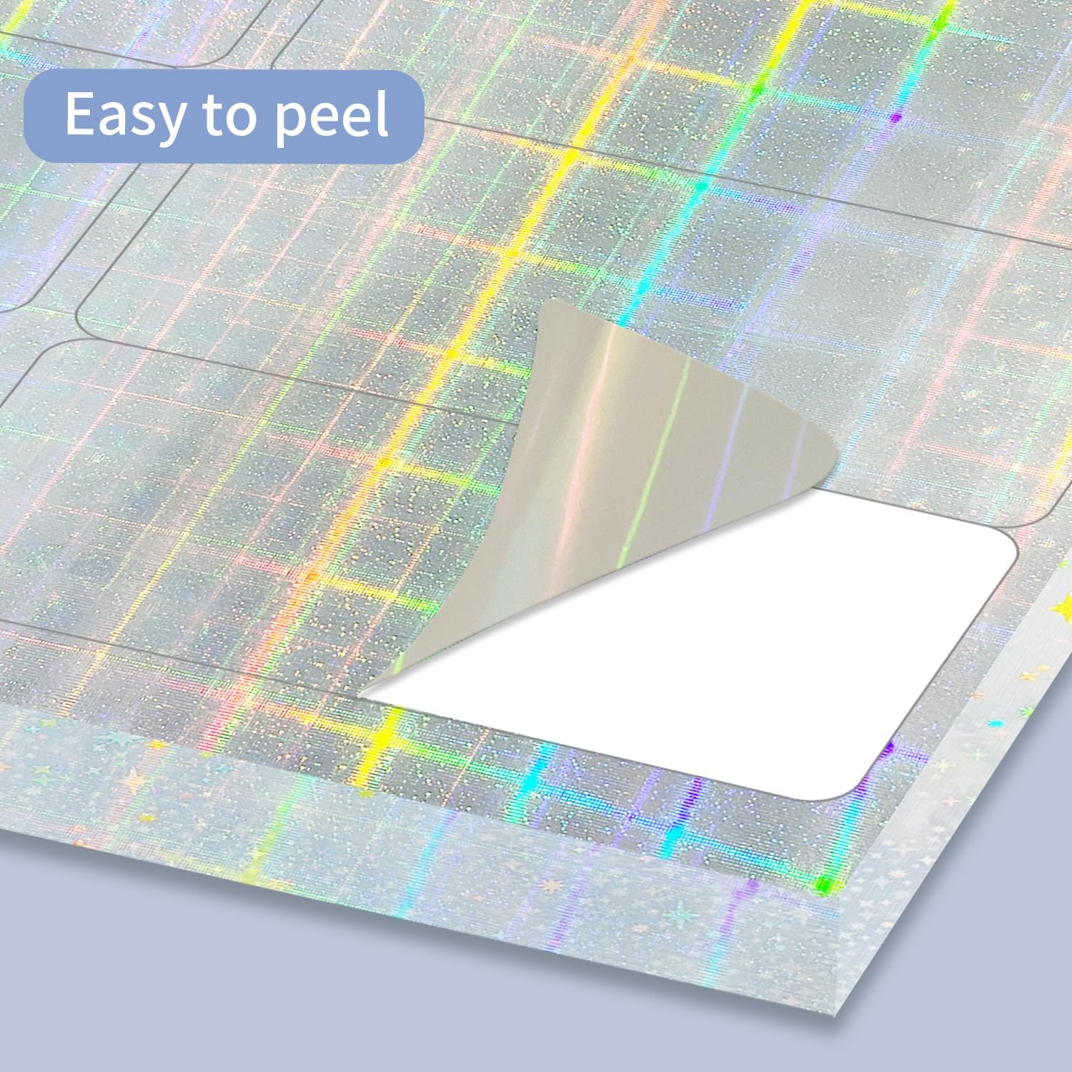 STARLIBOO 1" x 2-5/8" Address Labels- Holographic Color Stickers for Laser/Ink Jet Printer mailing Labels 8.5"×11"- Holographic Silver/ 30 per Sheet