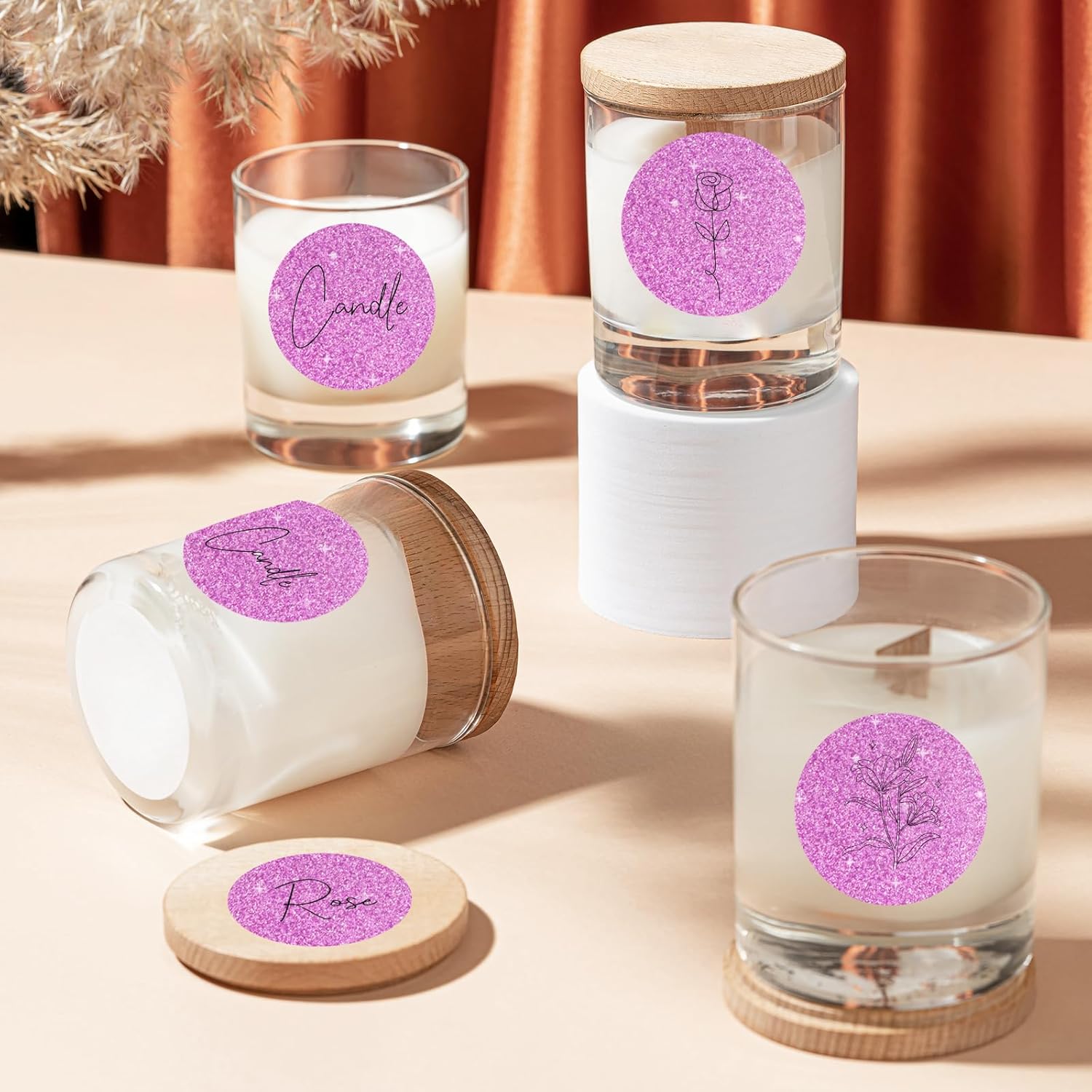 1.5" Holographic Direct Thermal Label Stickers, Round Printable Rainbow Glitter Thermal Printer Sticker Labels for Gift Wrapping, Self-Adhesive DIY Custom Logo Design- Glitter Pink