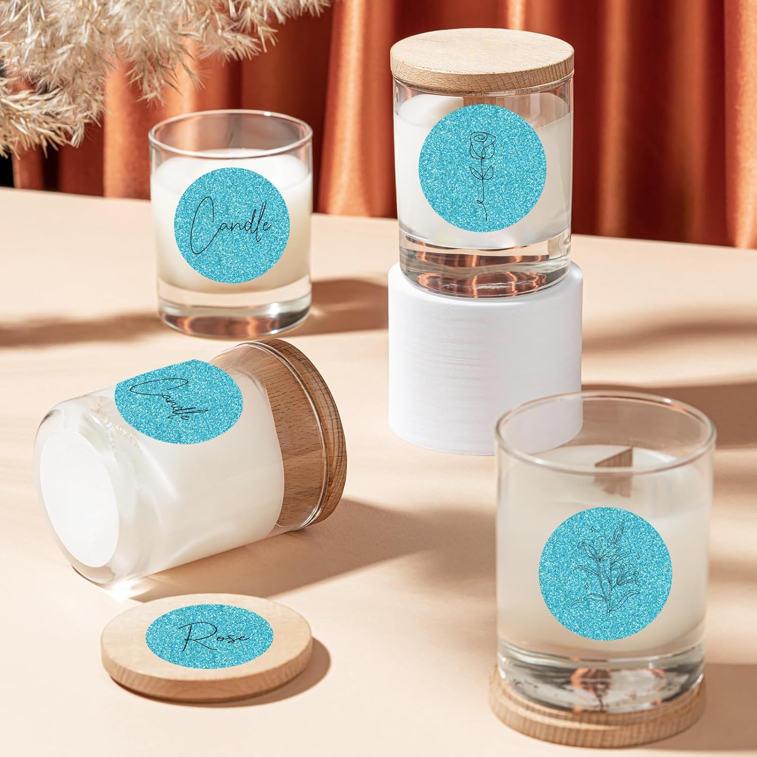 1.5" Holographic Direct Thermal Label Stickers, Round Printable Rainbow Glitter Thermal Printer Sticker Labels for Gift Wrapping, Self-Adhesive DIY Custom Logo Design- Glitter Blue