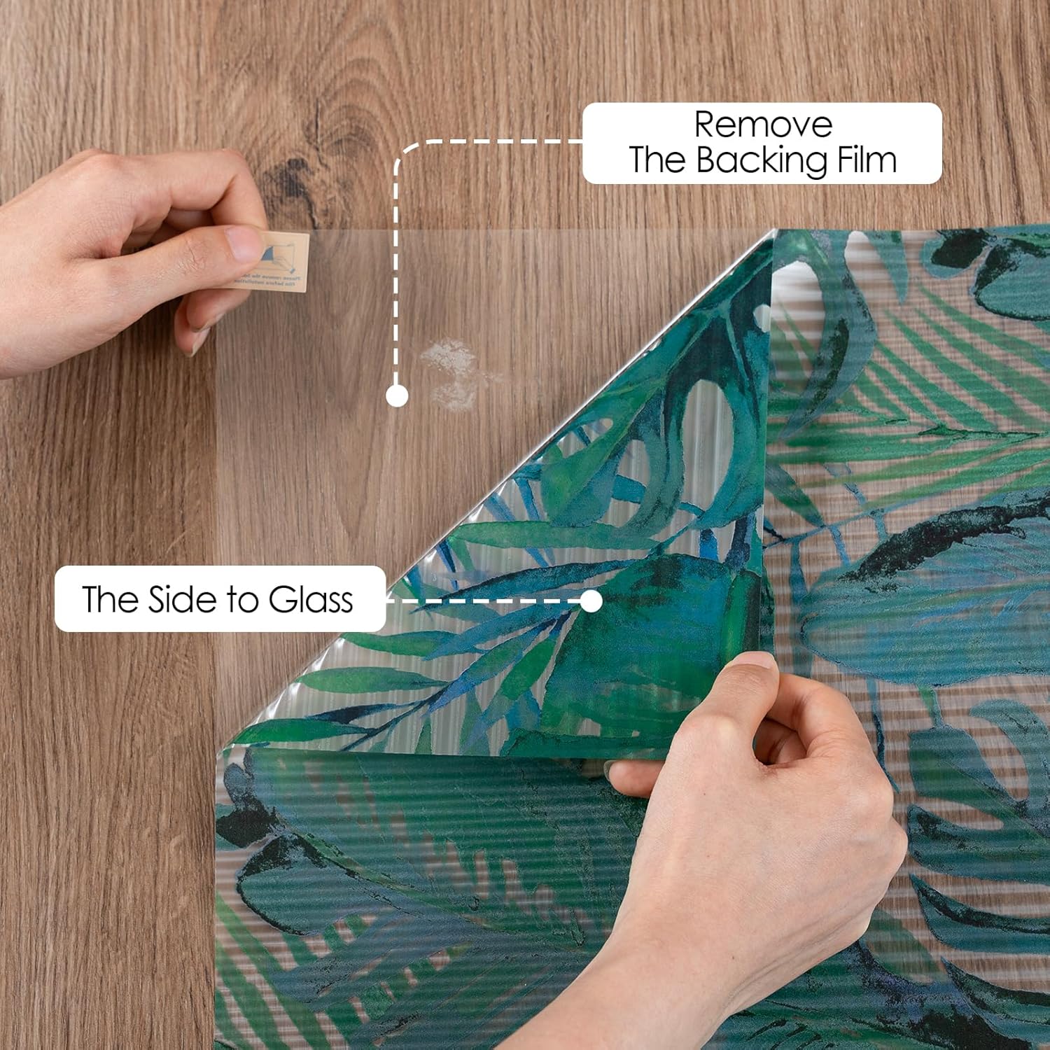 DKTIE Nature Pattern Rainbow Window Film Decorative Stained Glass Window Film Static Cling Films Easy Apply Removable Comes with Tools (U560-Reeded Glass, 17.7" x 78.7")