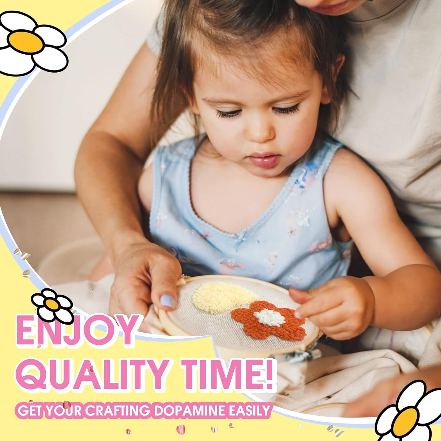 - Enjoy Quality Crafting Time: This kit offers hours of creative fun, bringing a burst of joy with each completed piece. Itβs an ideal activity to enjoy with children, making for memorable parent-child bonding time. Punch needle crafting sparks their imagination and helps develop fine motor skills, hand-eye coordination, and concentration. Itβs a hands-on project that encourages patience and perseverance through each step of the weaving process