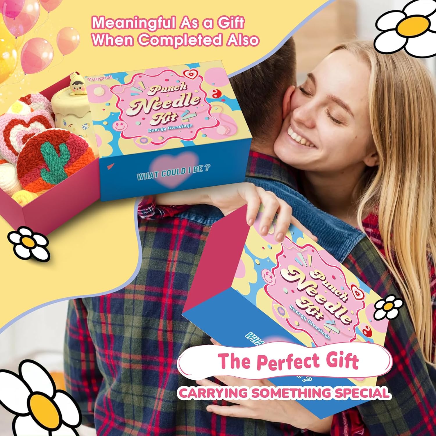 - High-Quality Materials & Abundant Accessories: This punch needle kit is beautifully packaged in a gift unique-designed box . The kit includes: 6 patterned cloths, 1 embroidery hoop, 6 adhesive felt pieces, 1 coaster holder, 6 punch needle tools, and an ample supply of embroidery yarn threads. Everything you need to create beautiful crafts