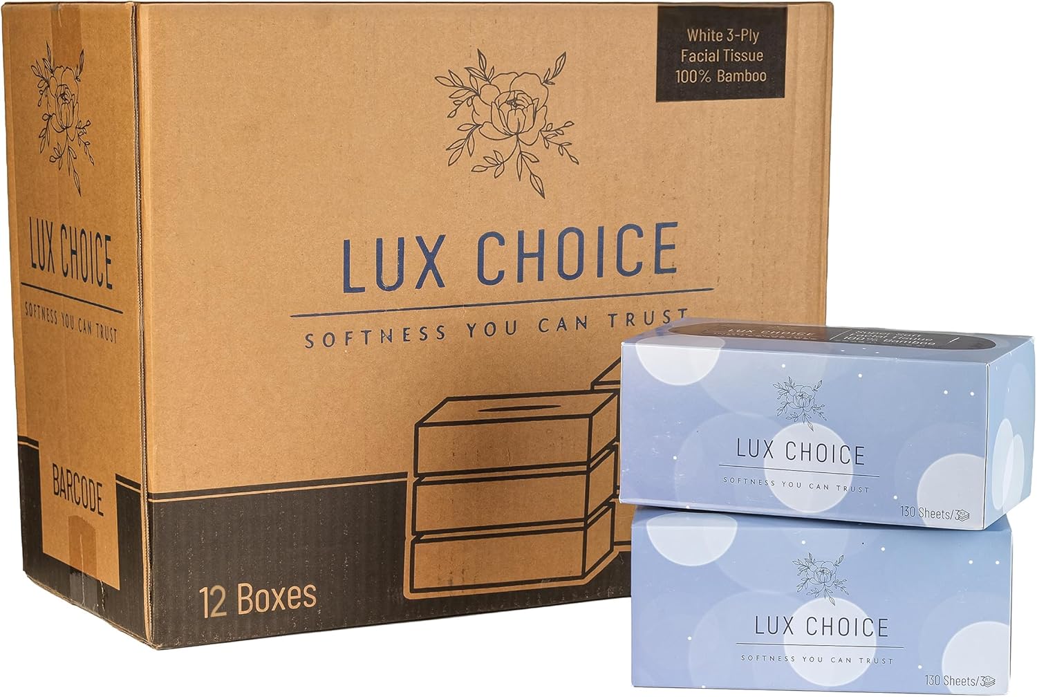Bamboo Facial Tissues – 130 Tissues per Box, 3 Ply,12 Boxes (1560 Total), Ultra Soft, Eco-Friendly & Hypoallergenic – for Home, Baby Care & Sensitive Skin