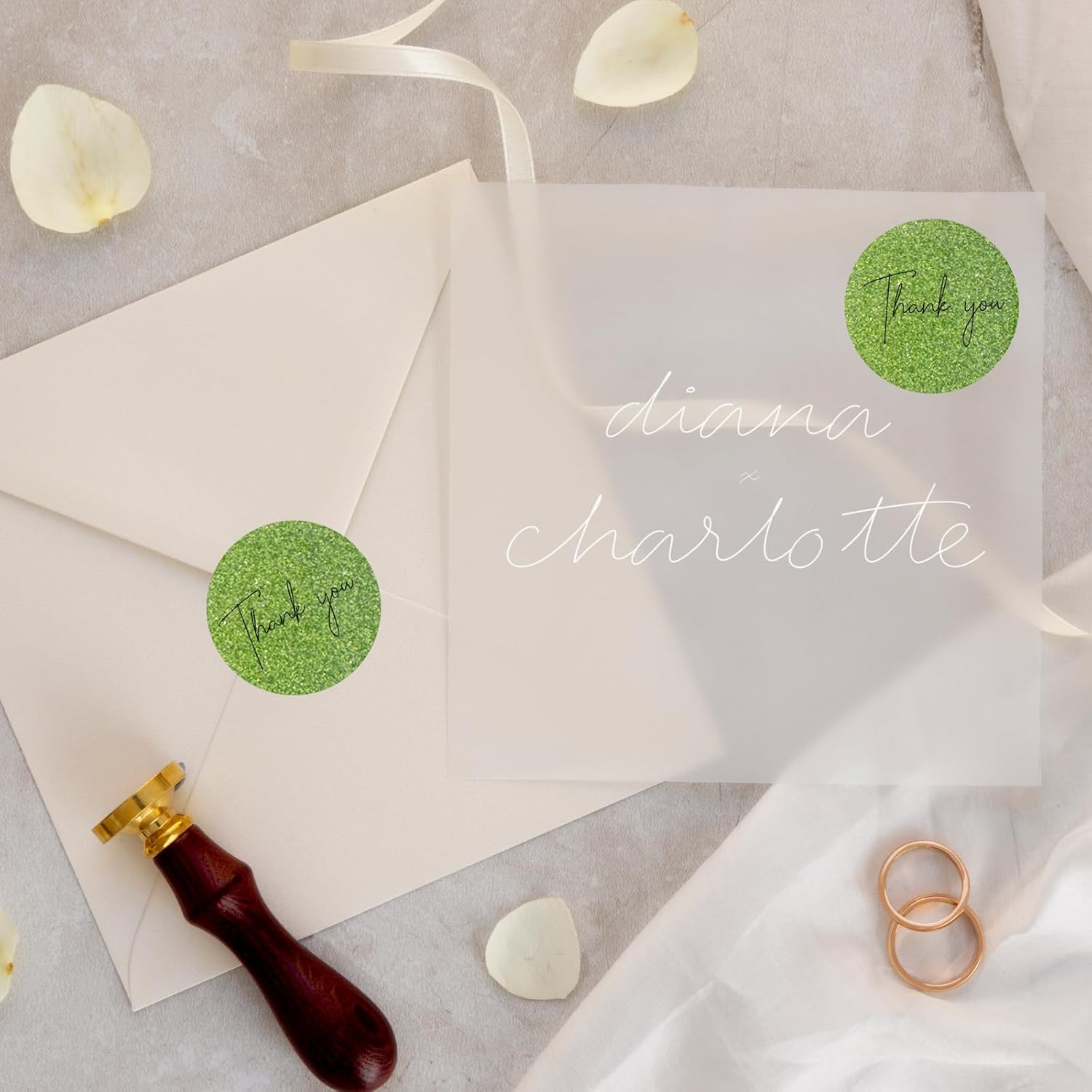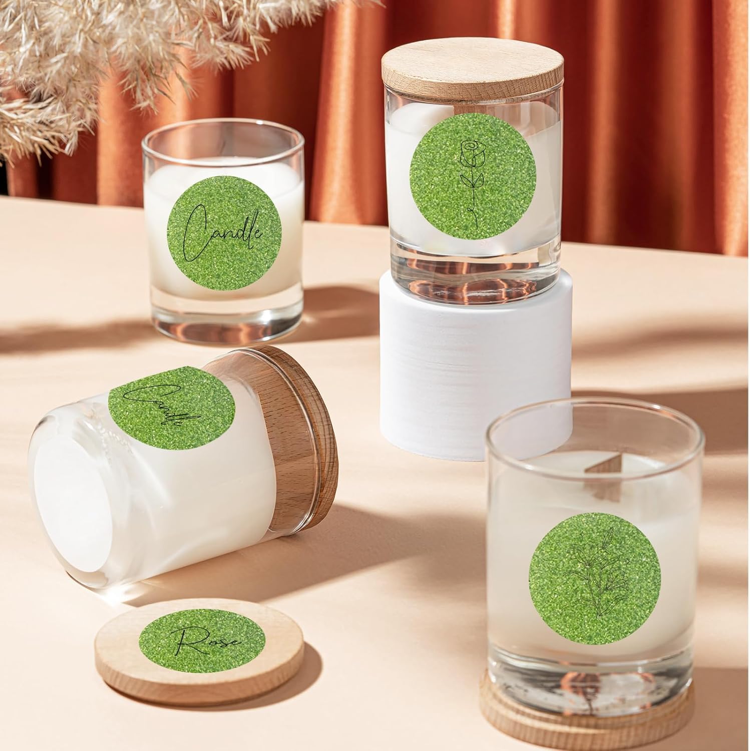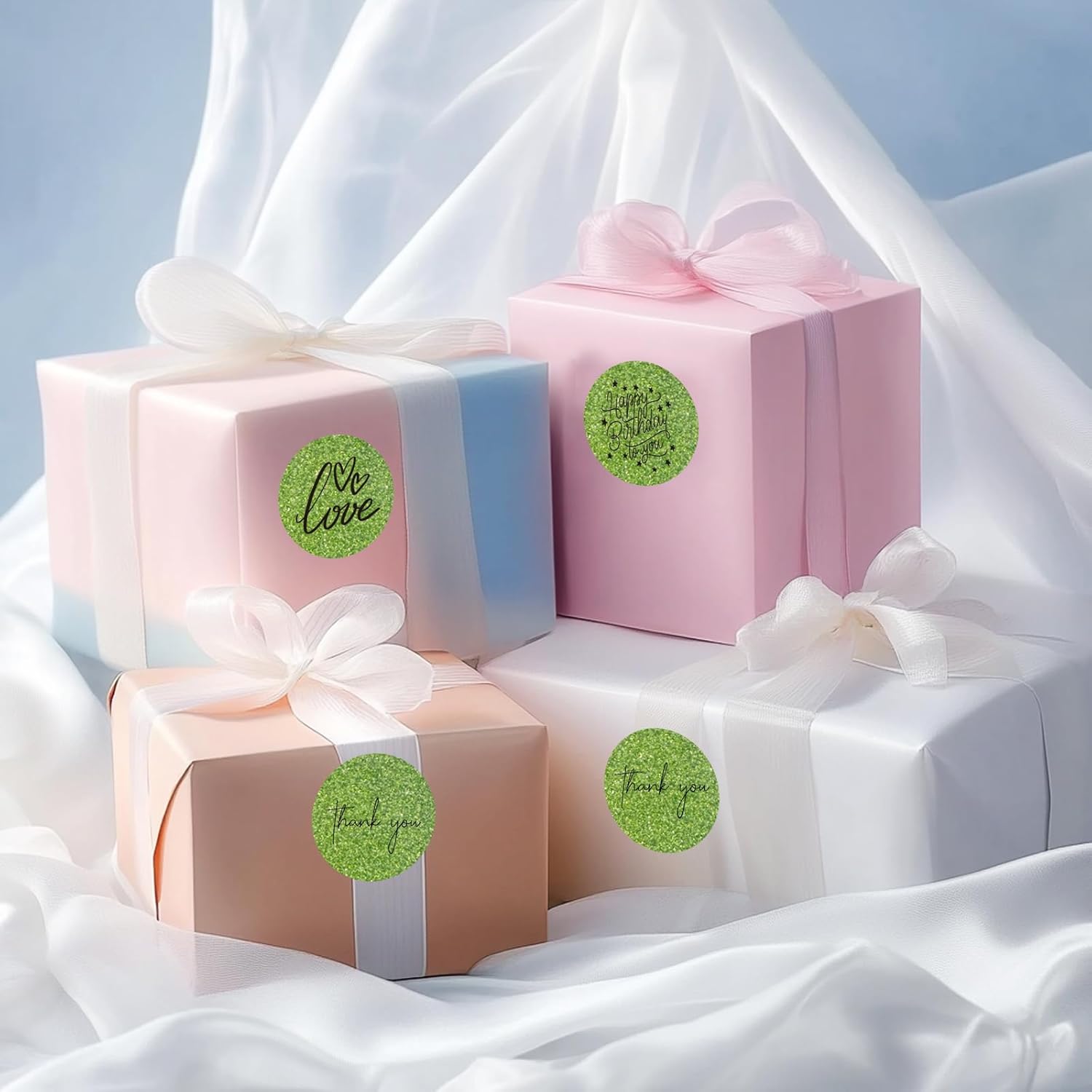 1.5" Holographic Direct Thermal Label Stickers, Round Printable Rainbow Glitter Thermal Printer Sticker Labels for Gift Wrapping, Self-Adhesive DIY Custom Logo Design- Glitter Green