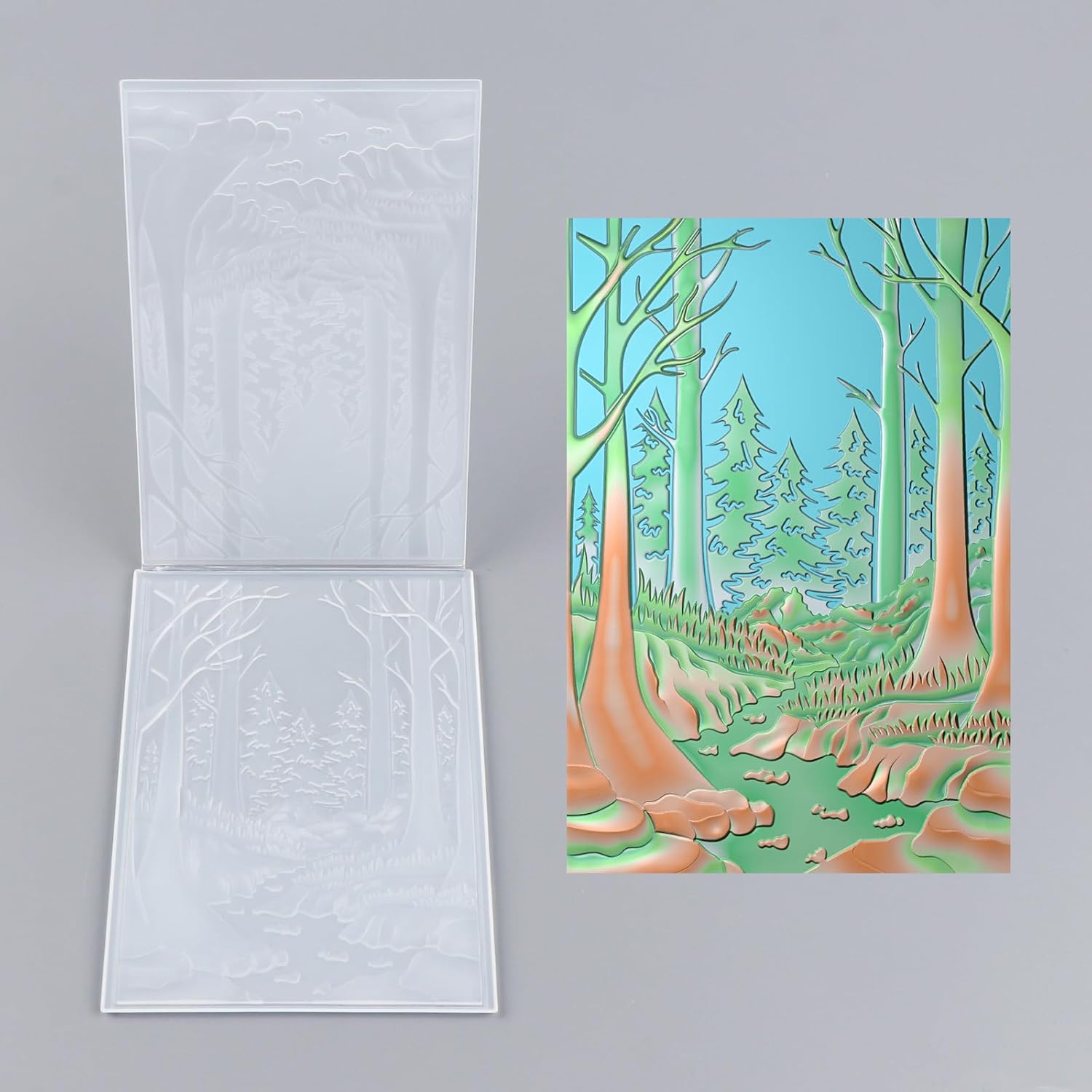 BAOFALI 3D Embossing Folder for Card Making,Deep Forest, Trees Texture Plastic Texture Fades Embossing Folder Template for Scrapbooking Cardstock Album DIY Decoration Paper Crafting 6.3x4.5inch