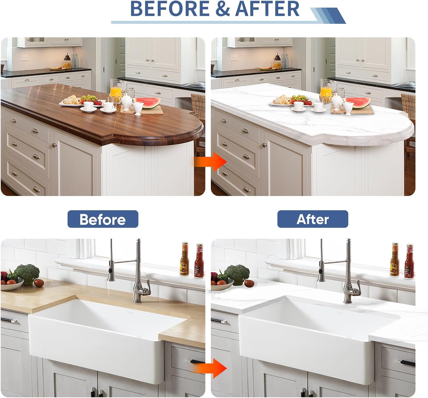 - EASY TO CLEAN: The painted countertop finish gives a smooth, seamless, water-resistant surface that makes everyday cleaning a breeze. Stains, moisture and grease are easily removed with a simple wipe, giving your kitchen sink countertops, vanities, kitchen islands and furniture such as dressers and dining tables a fresh new look
