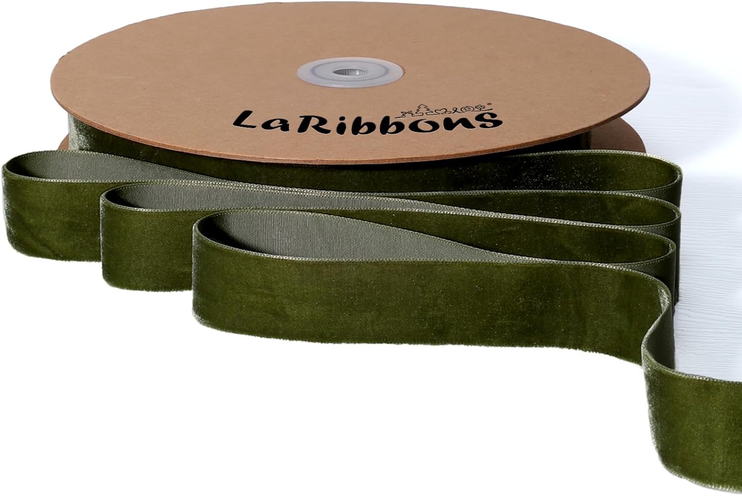 LaRibbons Thin Velvet Ribbon 1 Inch x 25 Yards, Moss Green Velvet Ribbon for Christmas Tree, Gift Wrapping, Wreath Bow, Outdoor Decoration