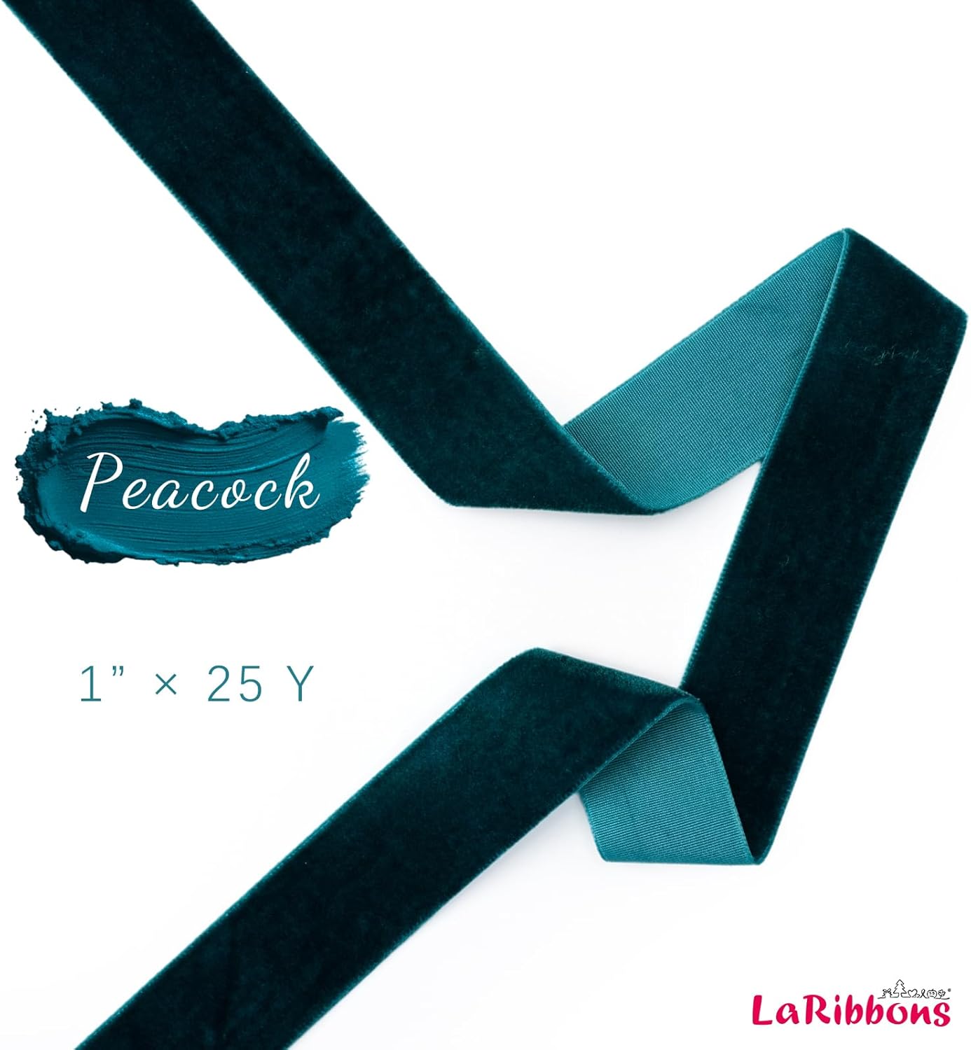 LaRibbons Thin Velvet Ribbon 1 Inch x 25 Yards, Dark Blue Velvet Ribbon for Christmas Tree, Gift Wrapping, Wreath Bow, Outdoor Decoration
