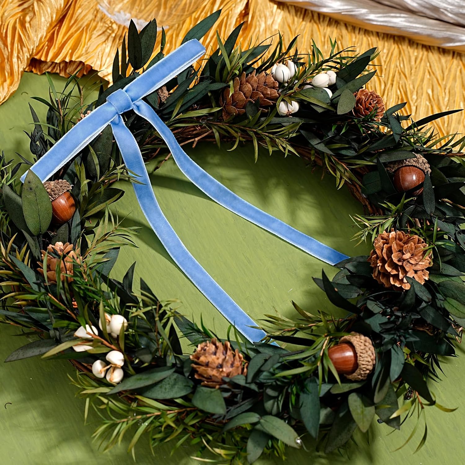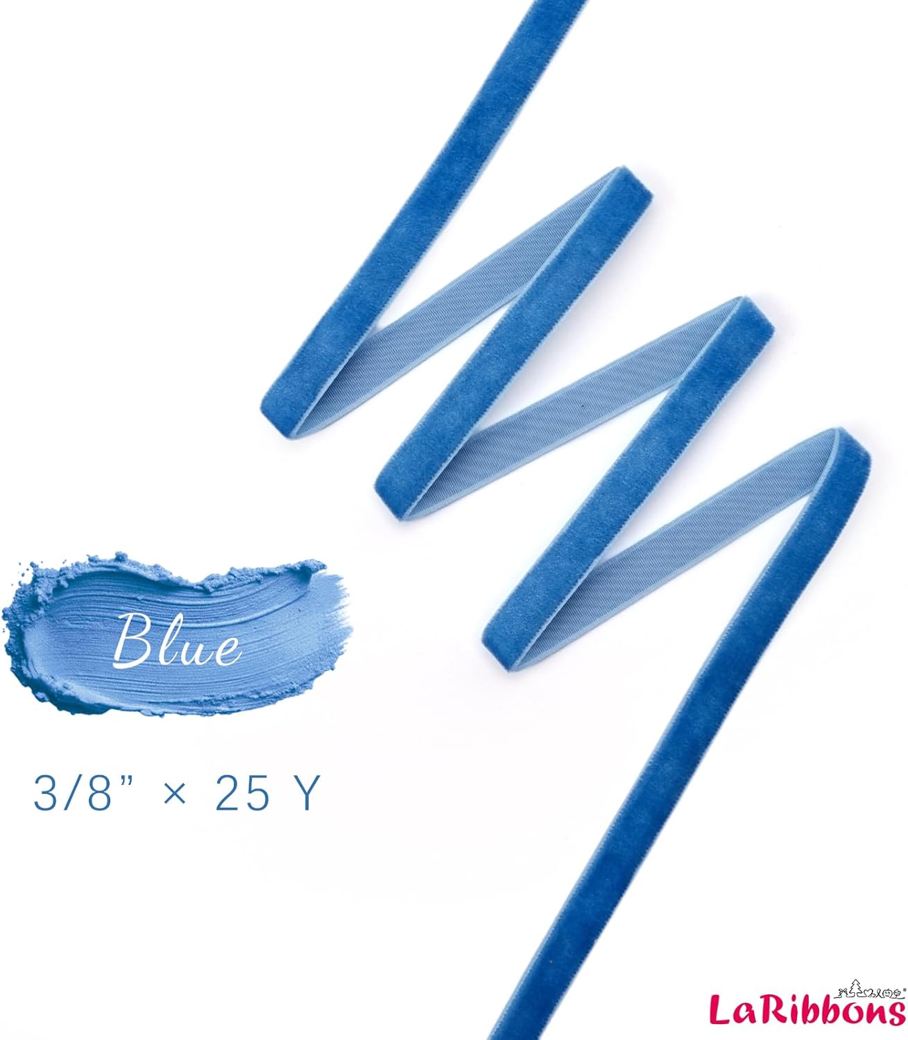 LaRibbons Thin Velvet Ribbon 3/8 Inch x 25 Yards, Dusty Blue Velvet Ribbon for Christmas Tree, Gift Wrapping, Wreath Bow, Outdoor Decoration