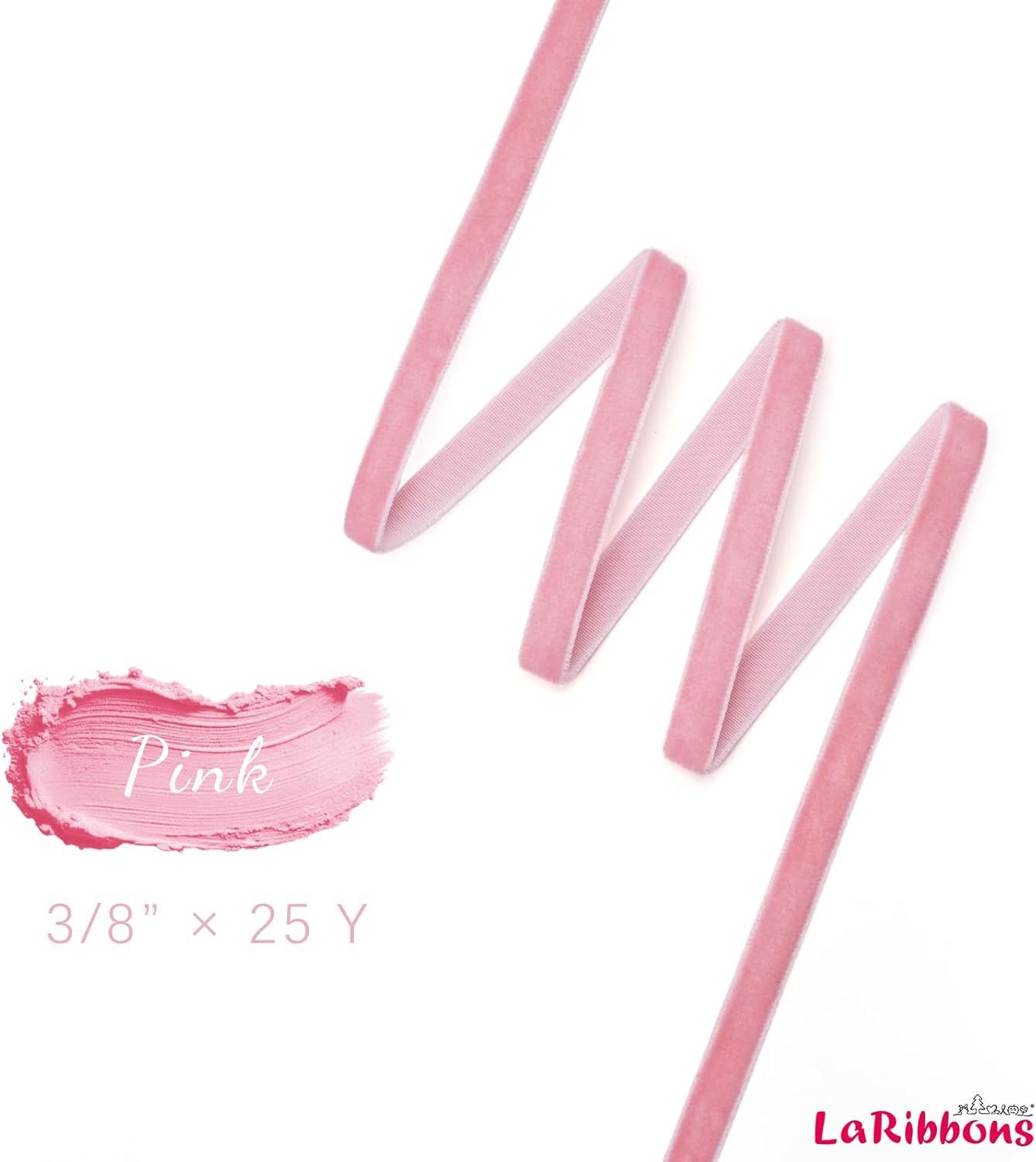 LaRibbons Thin Velvet Ribbon 3/8 Inch x 25 Yards, Pink Velvet Ribbon for Christmas Tree, Gift Wrapping, Wreath Bow, Outdoor Decoration