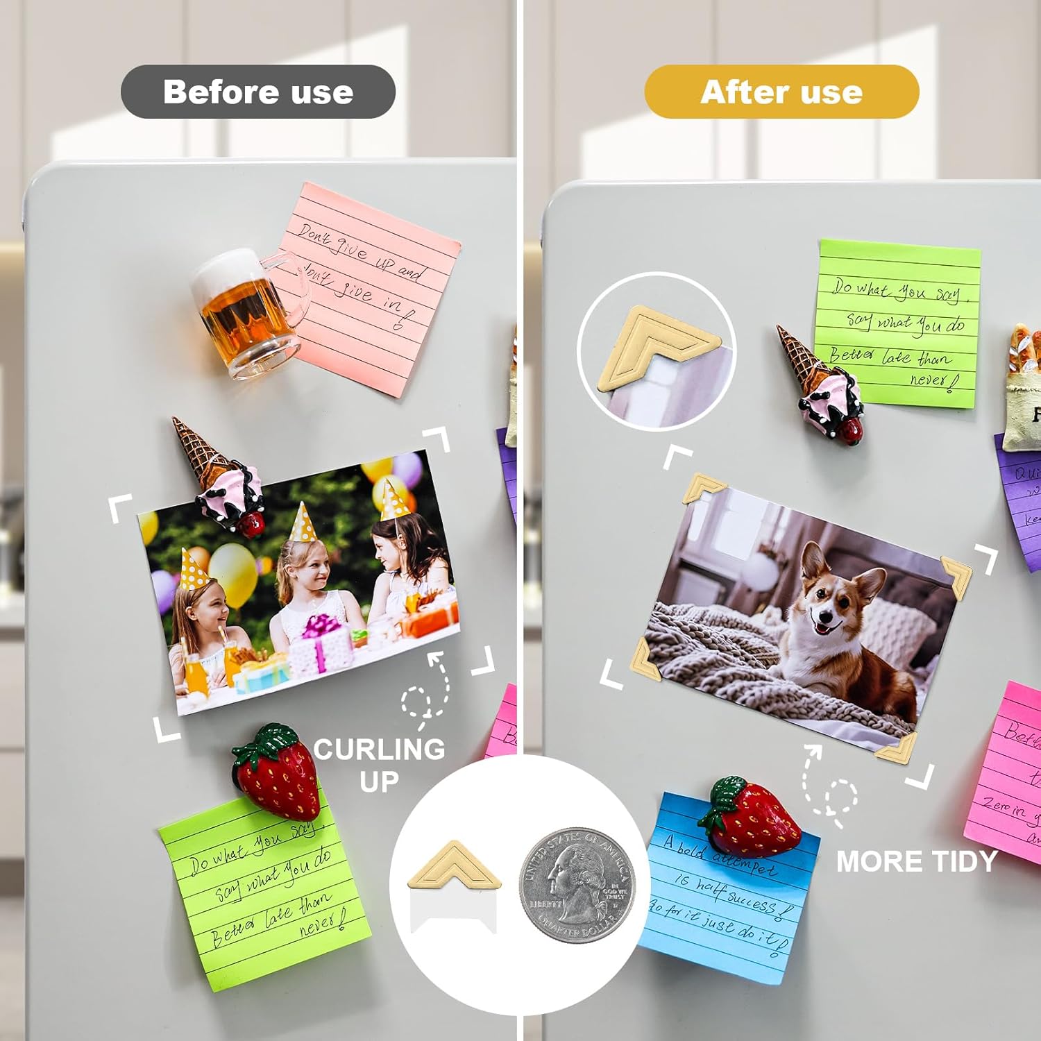 - 4. EASY TO USE: Using our photo corners is a breeze. Simply slide the corner of your photo into the photo corner and paste it onto your scrapbook. No additional glue is required