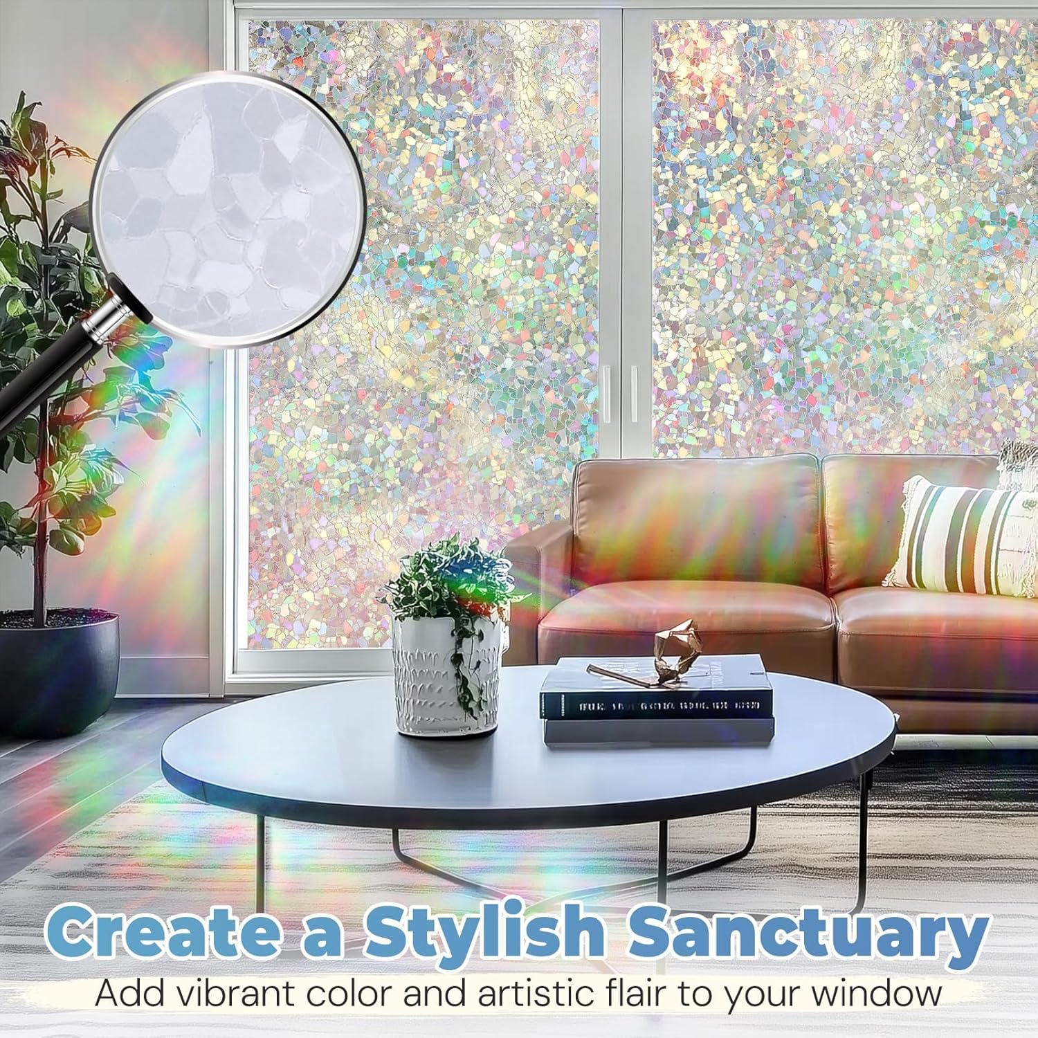 - Enjoy natural light in privacy: Our semi-privacy film diffuses incoming sunlight, creating a soft, pleasant glow in your room while eliminating harsh glare. Unlike bulky blinds that block out the world completely, our rainbow films provide privacy while still allowing daylight to pass through
