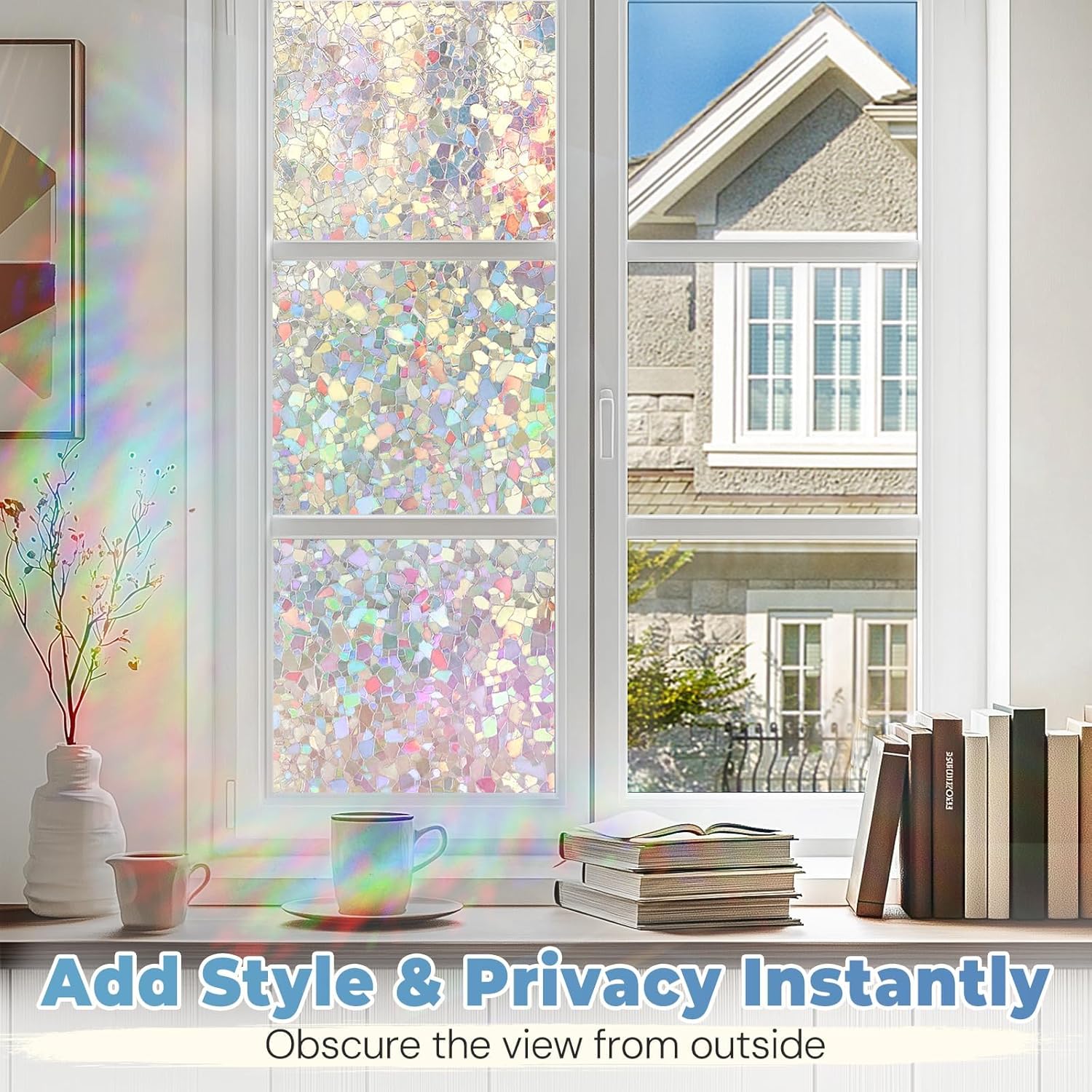 - Enjoy natural light in privacy: Our semi-privacy film diffuses incoming sunlight, creating a soft, pleasant glow in your room while eliminating harsh glare. Unlike bulky blinds that block out the world completely, our rainbow films provide privacy while still allowing daylight to pass through