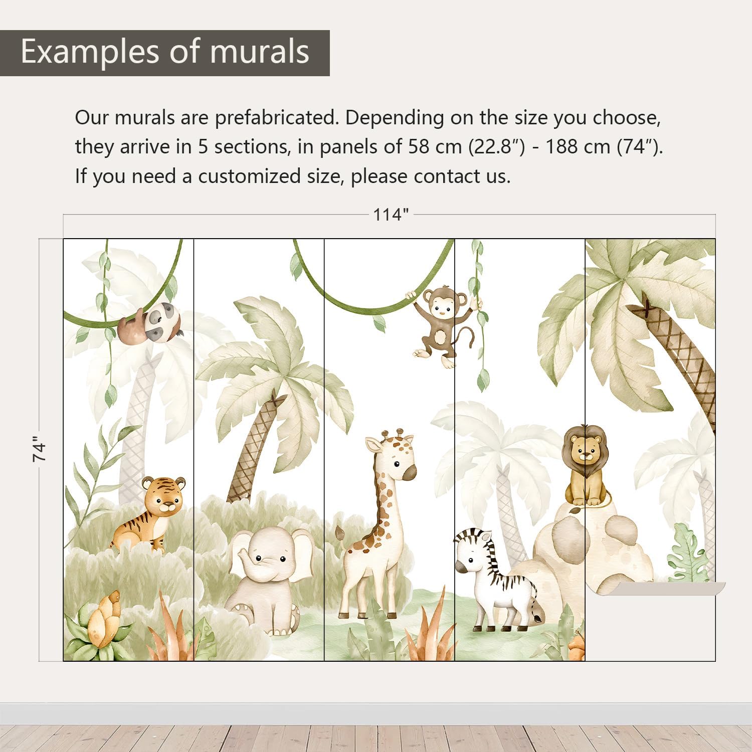 AFZEVEB-Safari Wallpaper Watercolor Animal Nursery Wall murals for Kids Room 114"x74"(Not Peel and Stick)
