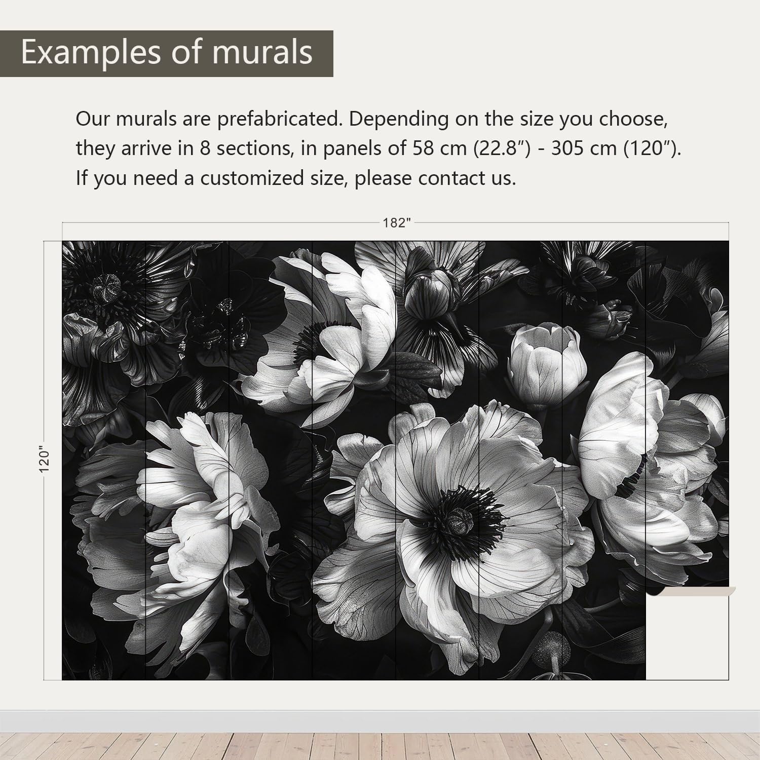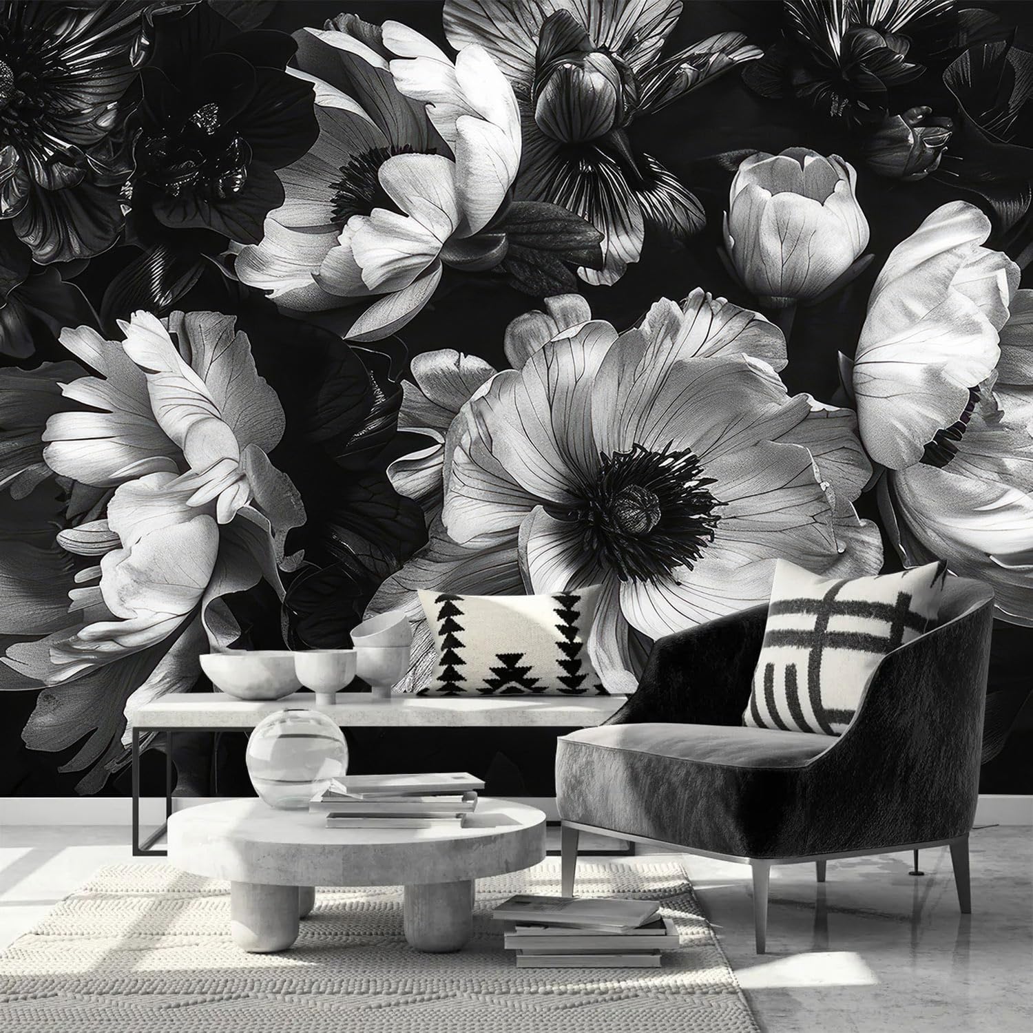 AFZEVEB-Black Peony Floral Wallpaper Vintage Large Flower Wall murals for Bedroom 182"x120"(Not Peel and Stick)