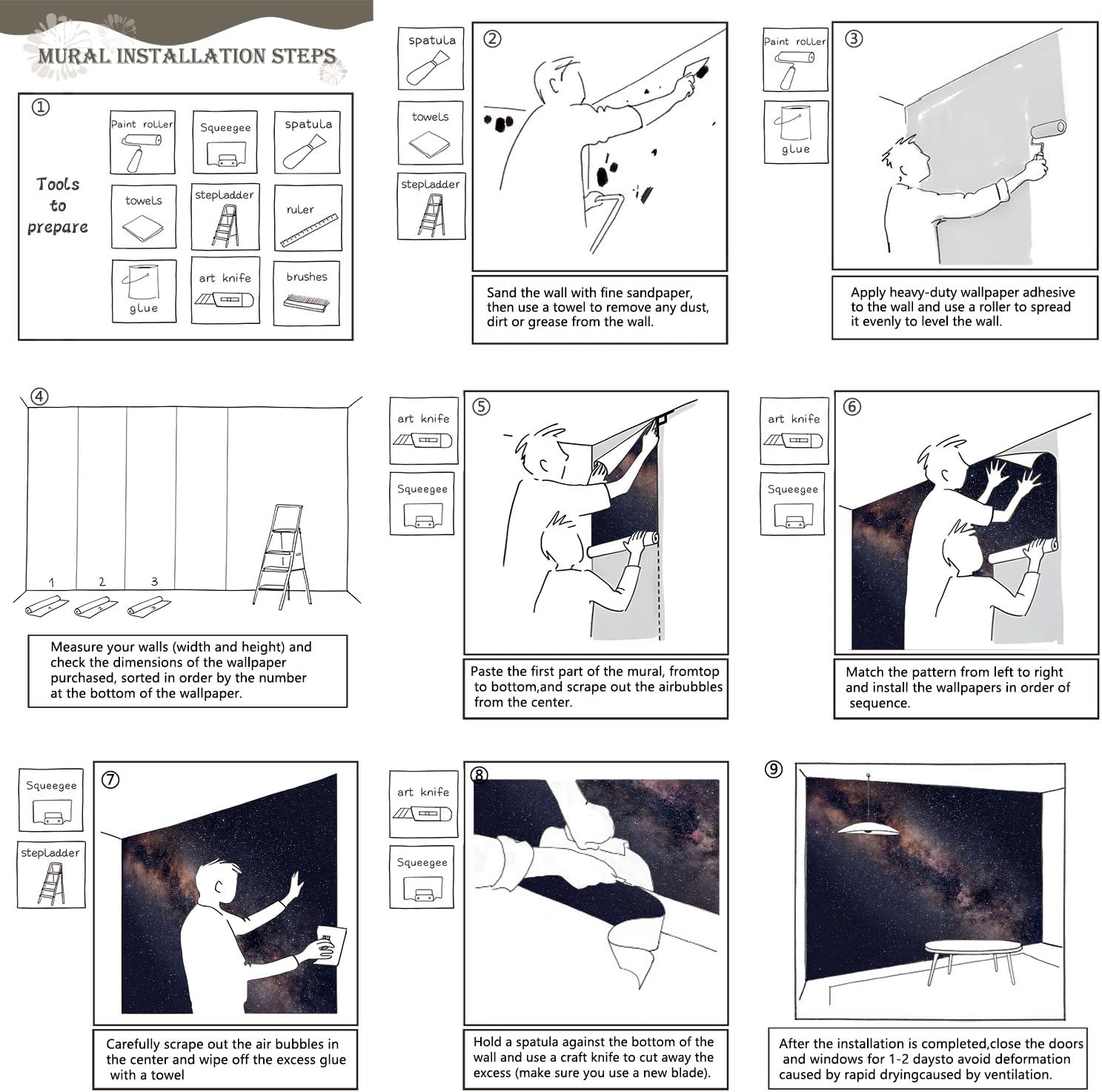 - Tips: Mural can not be peeled and pasted, you need to buy a heavy duty wallpaper glue